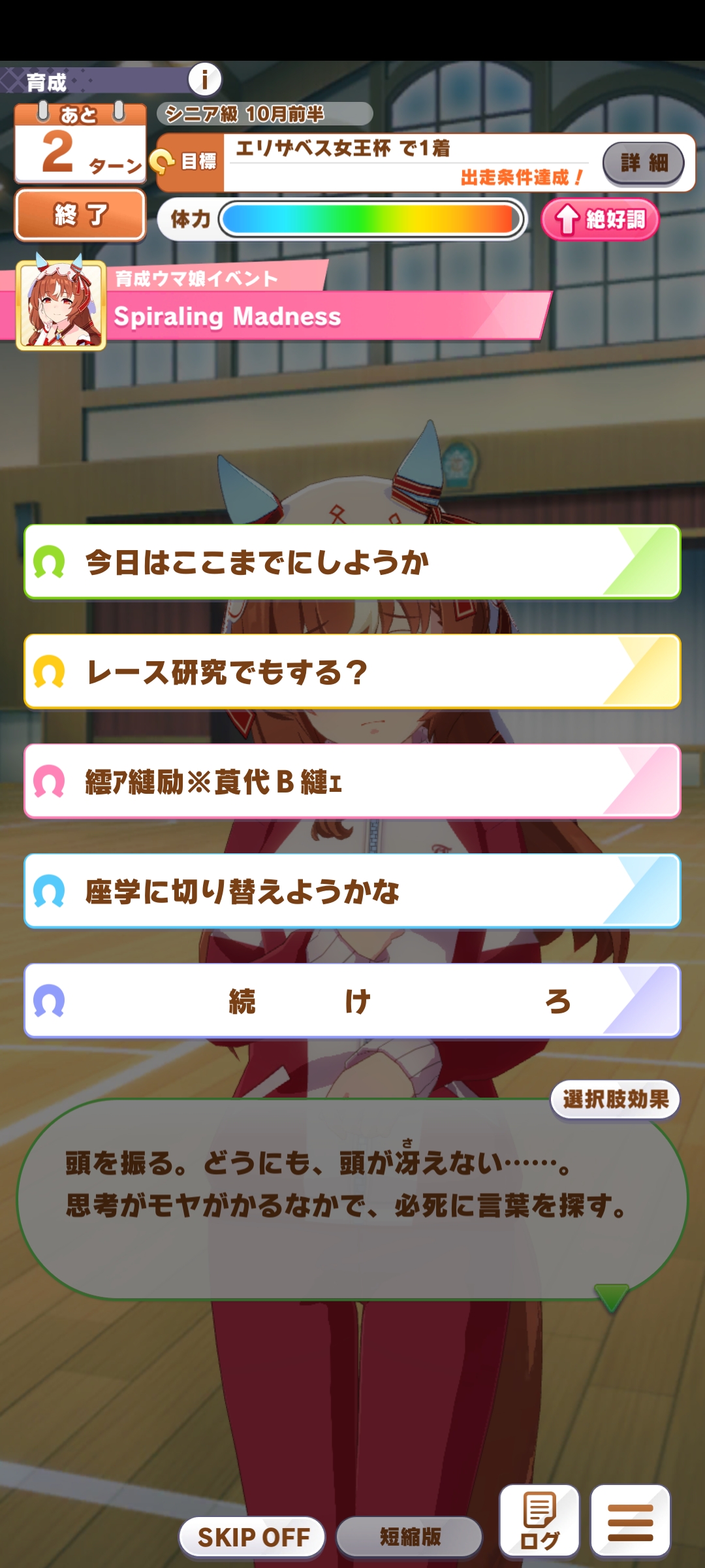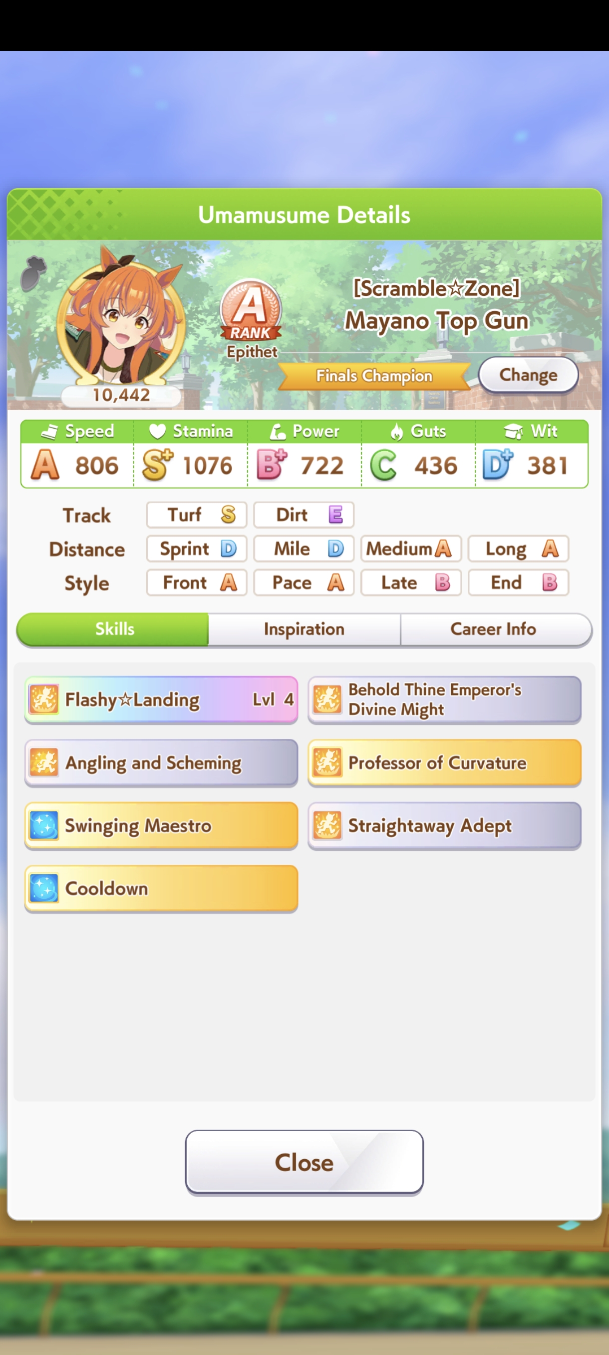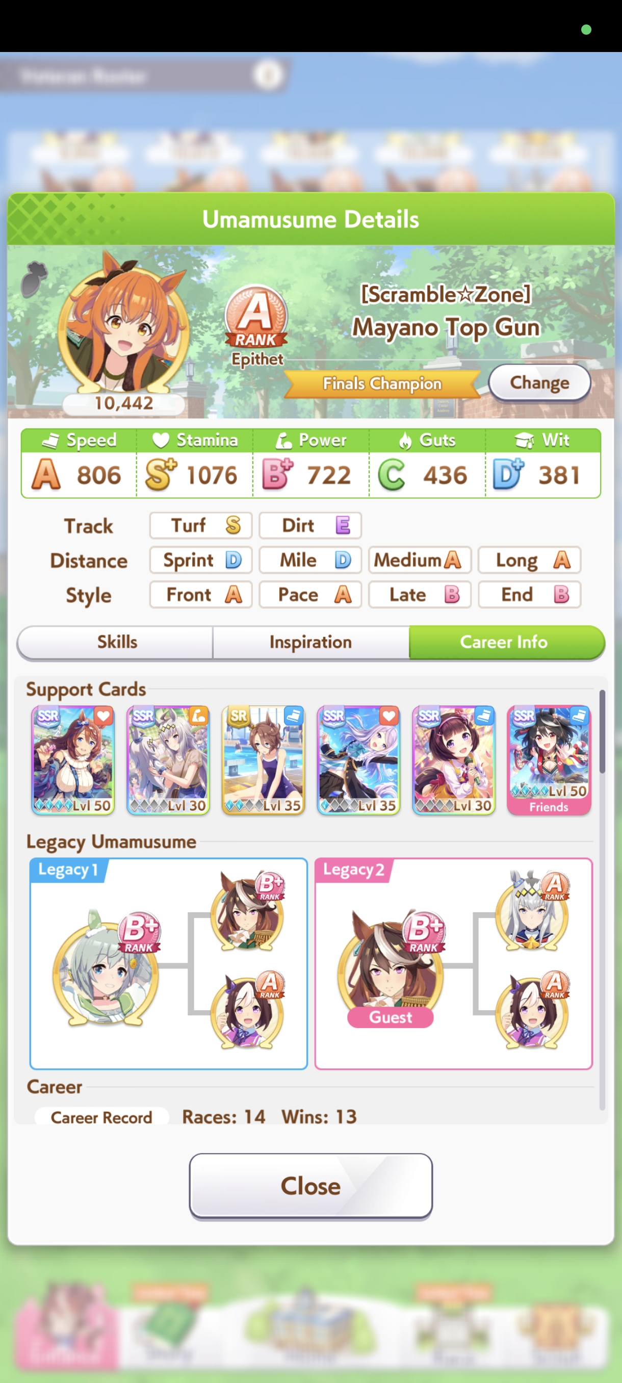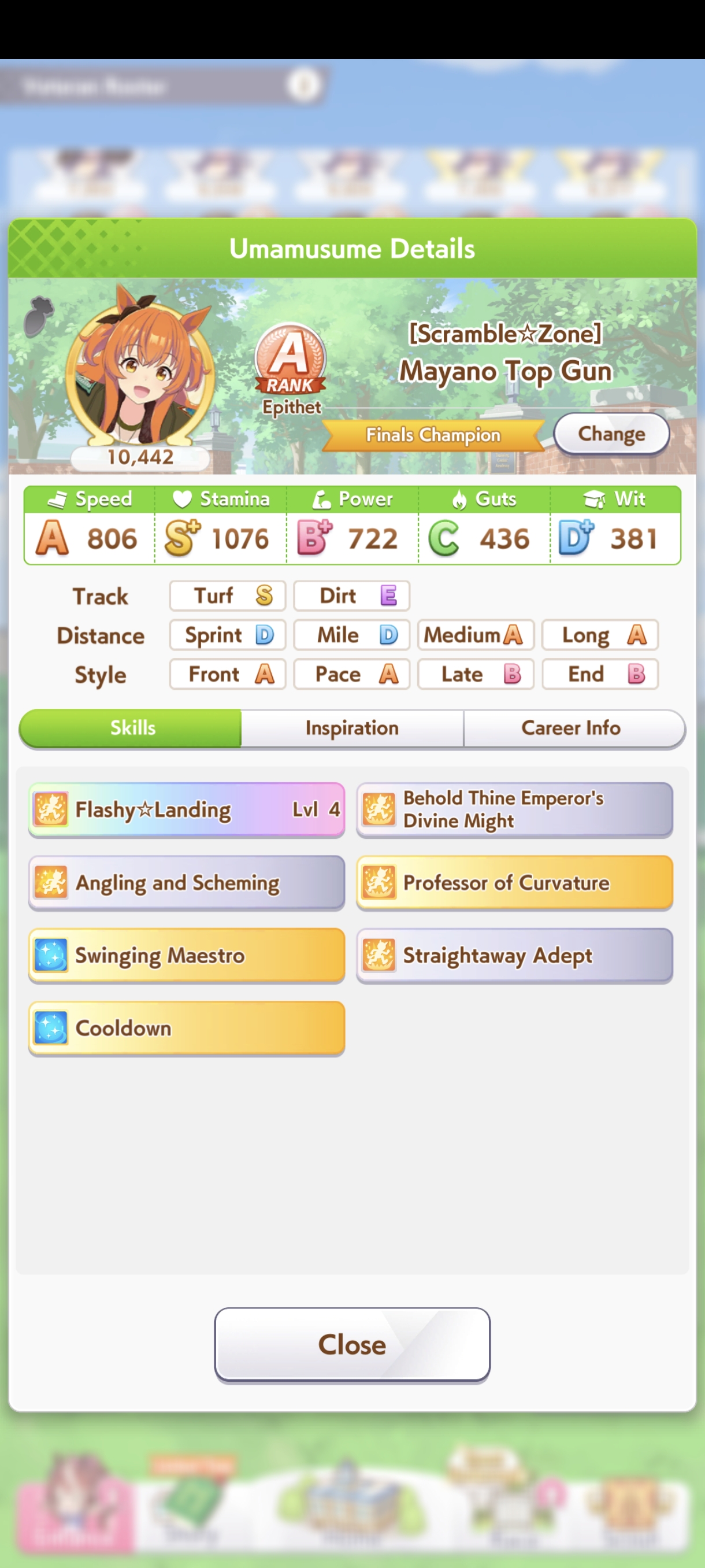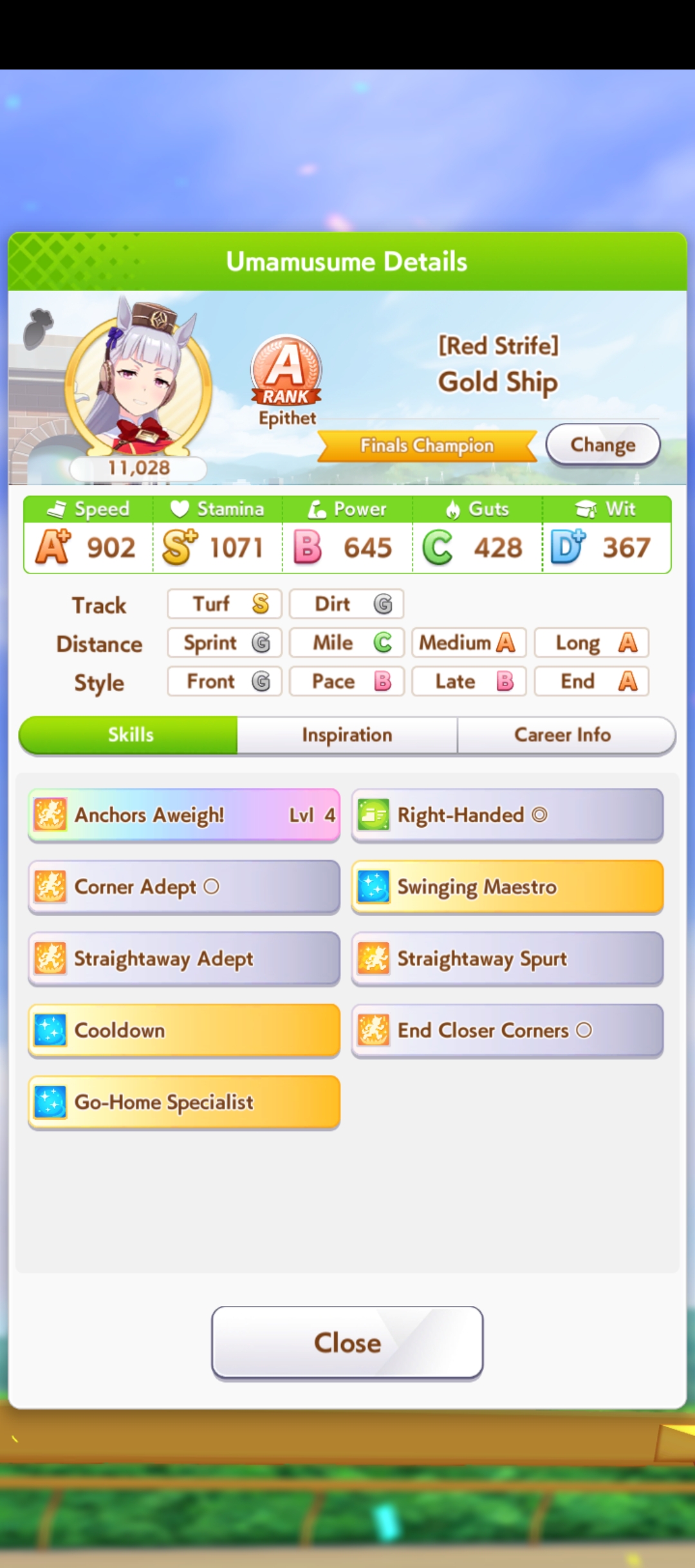 о ты даже скрытое требование к стамине и гатсу прошел (хотя там вроде надо 600+/400+ поправьте кто знает), за это на трасе доп скорость дадут