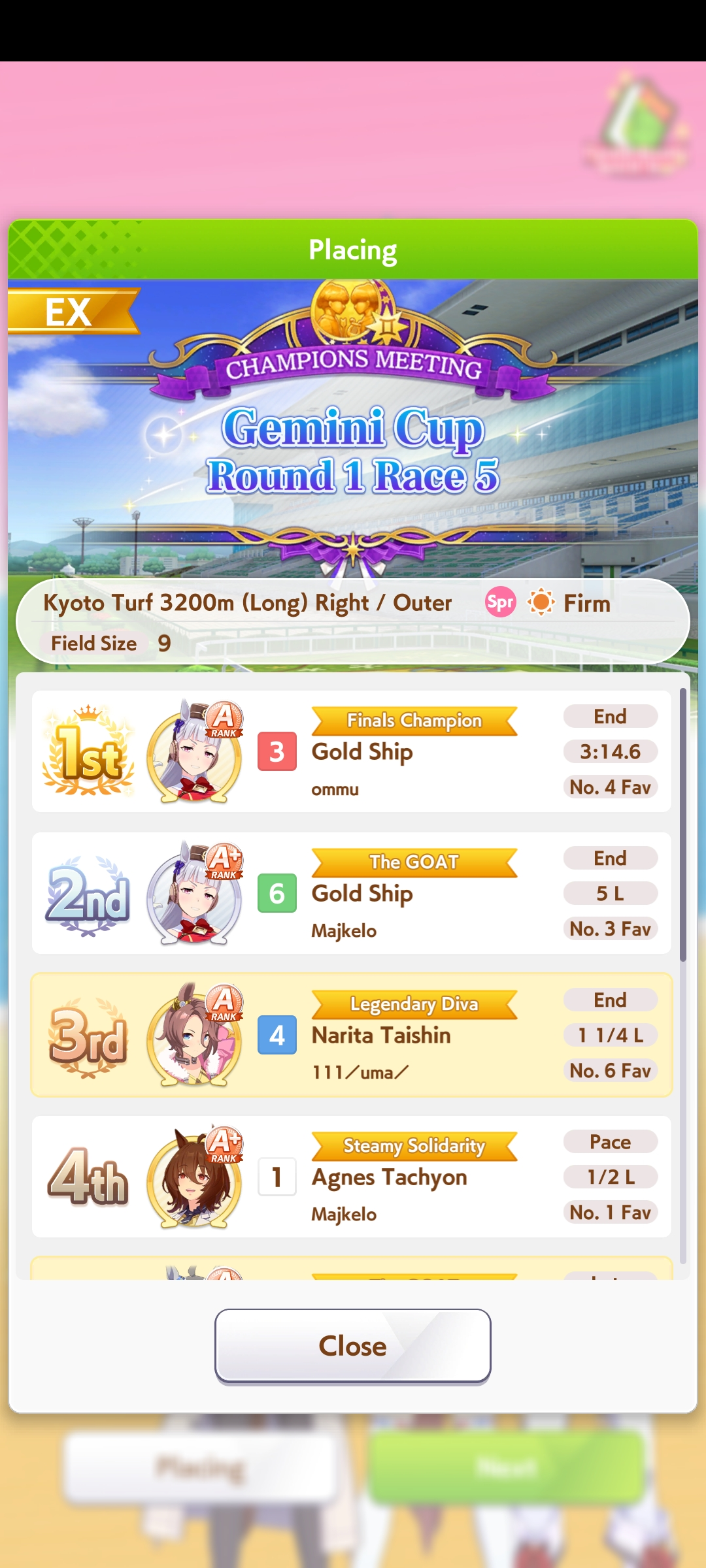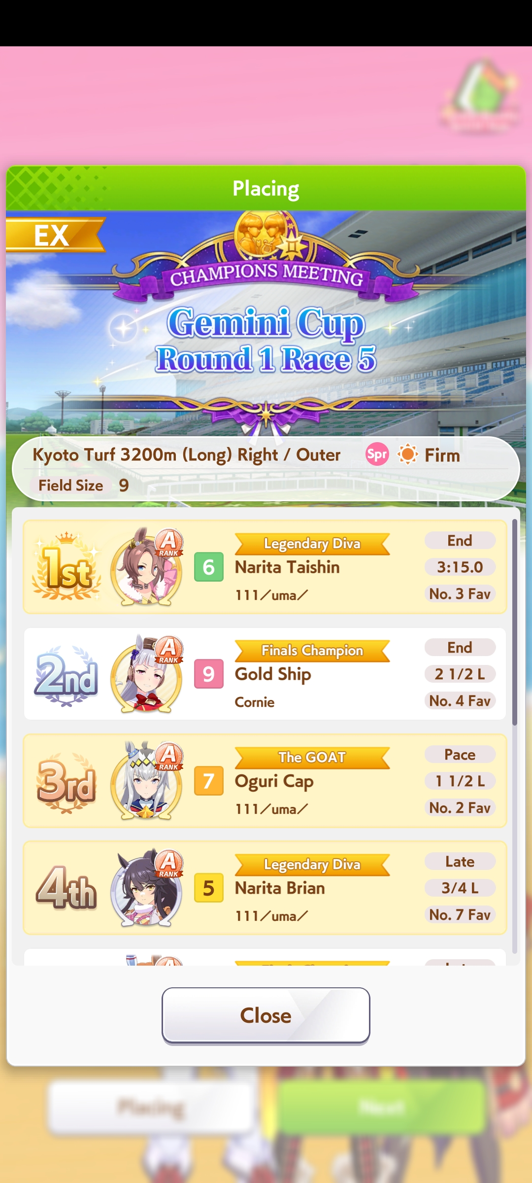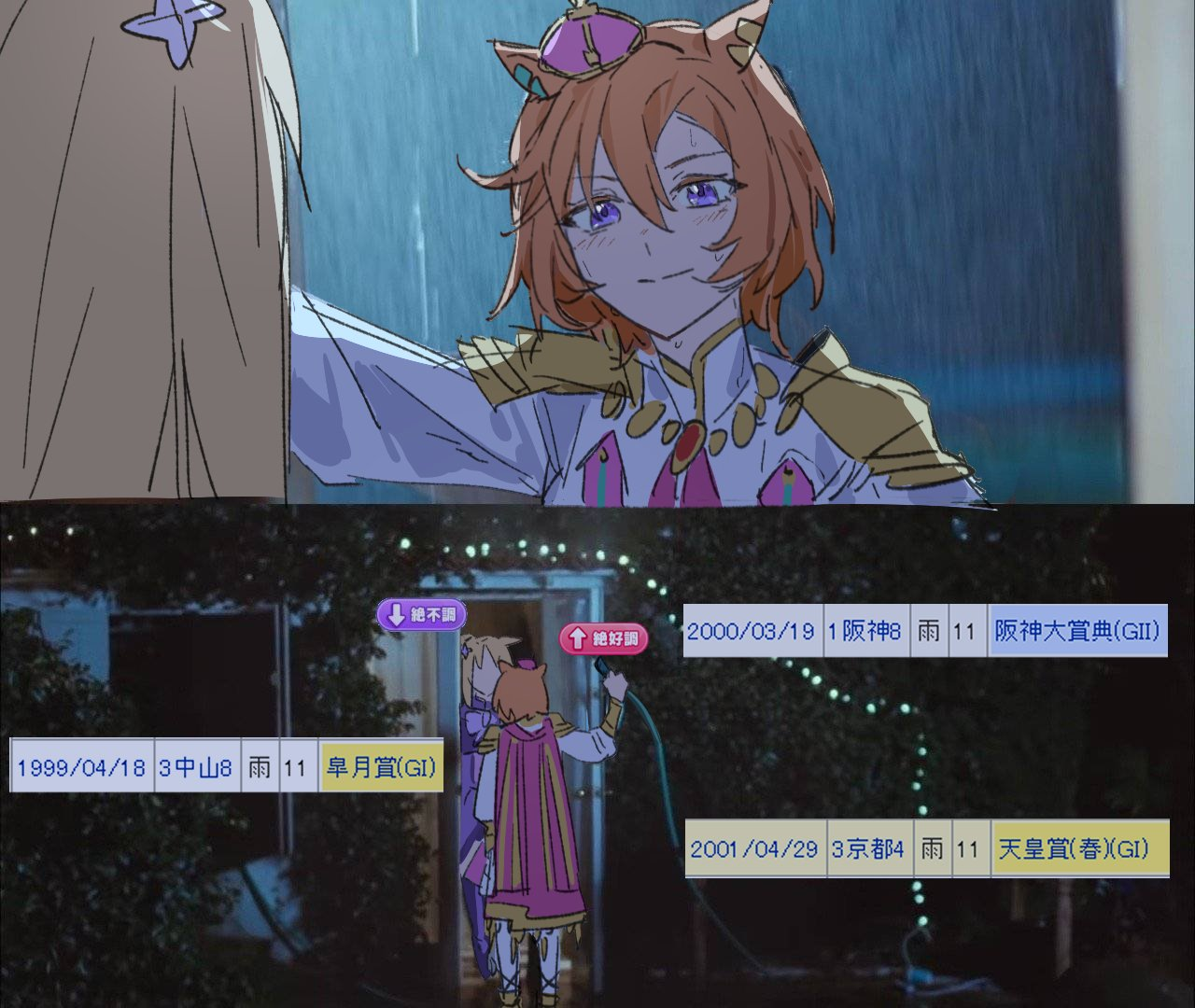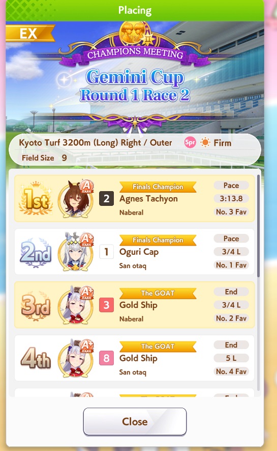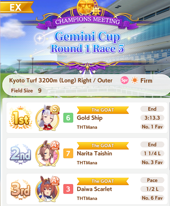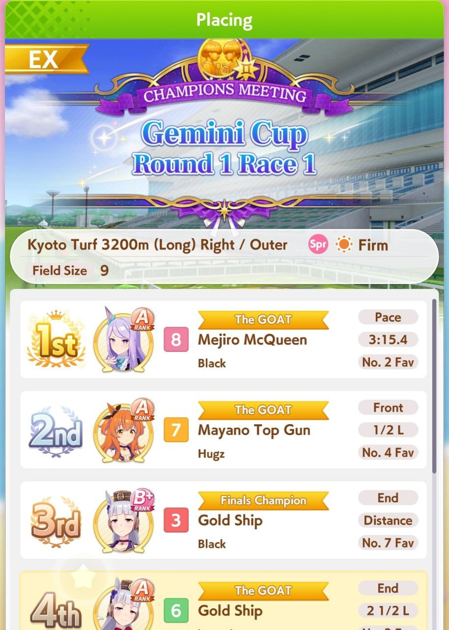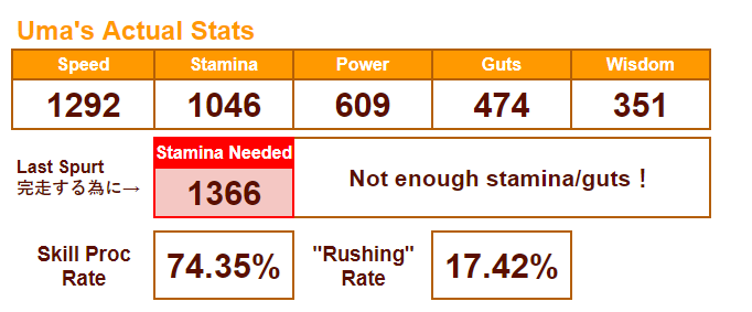 Не претендует на идеальную точность, но даёт примерно сравнить несколько лошадей на определённой карте (следующий CM - Kyoto / Turf / 3200m (Long) / Right-Handed / Outer / Spring / Sunny / Firm)