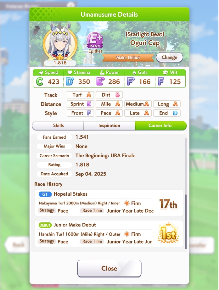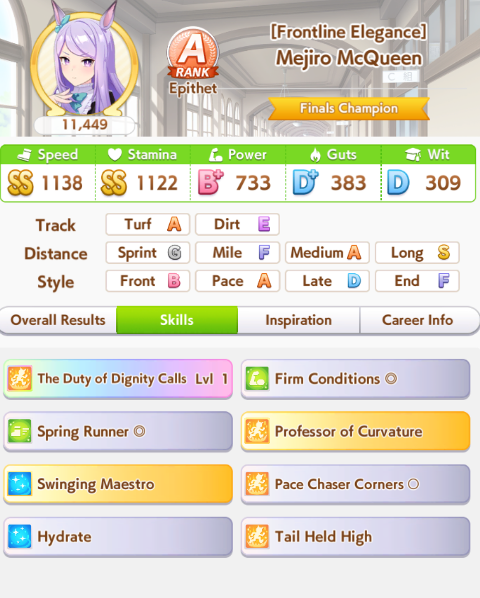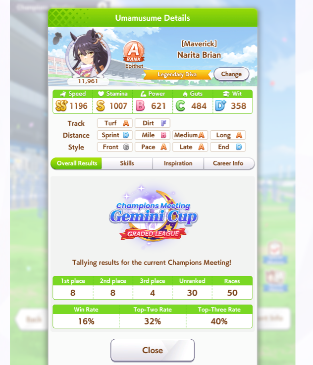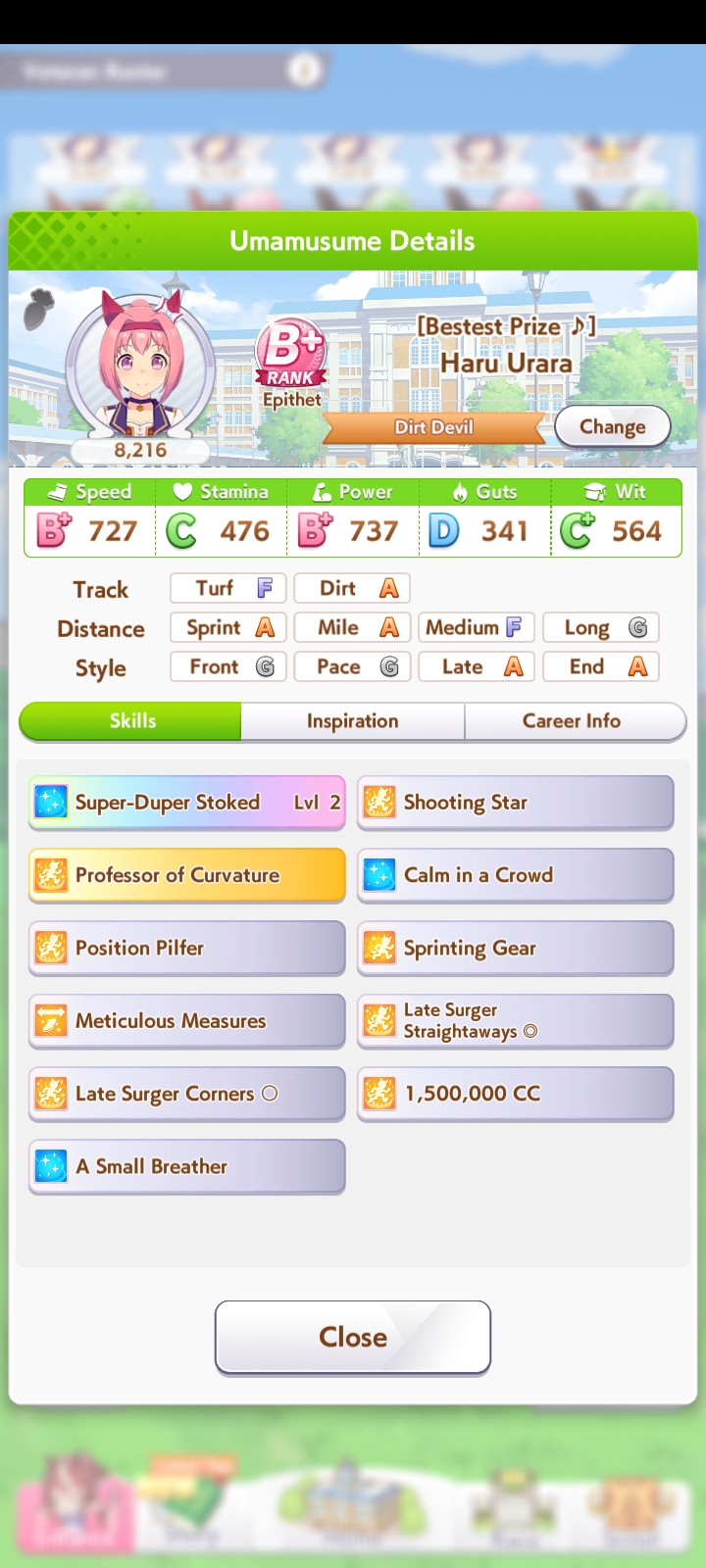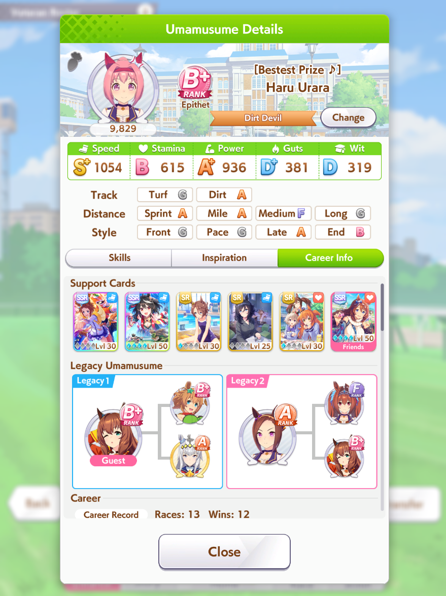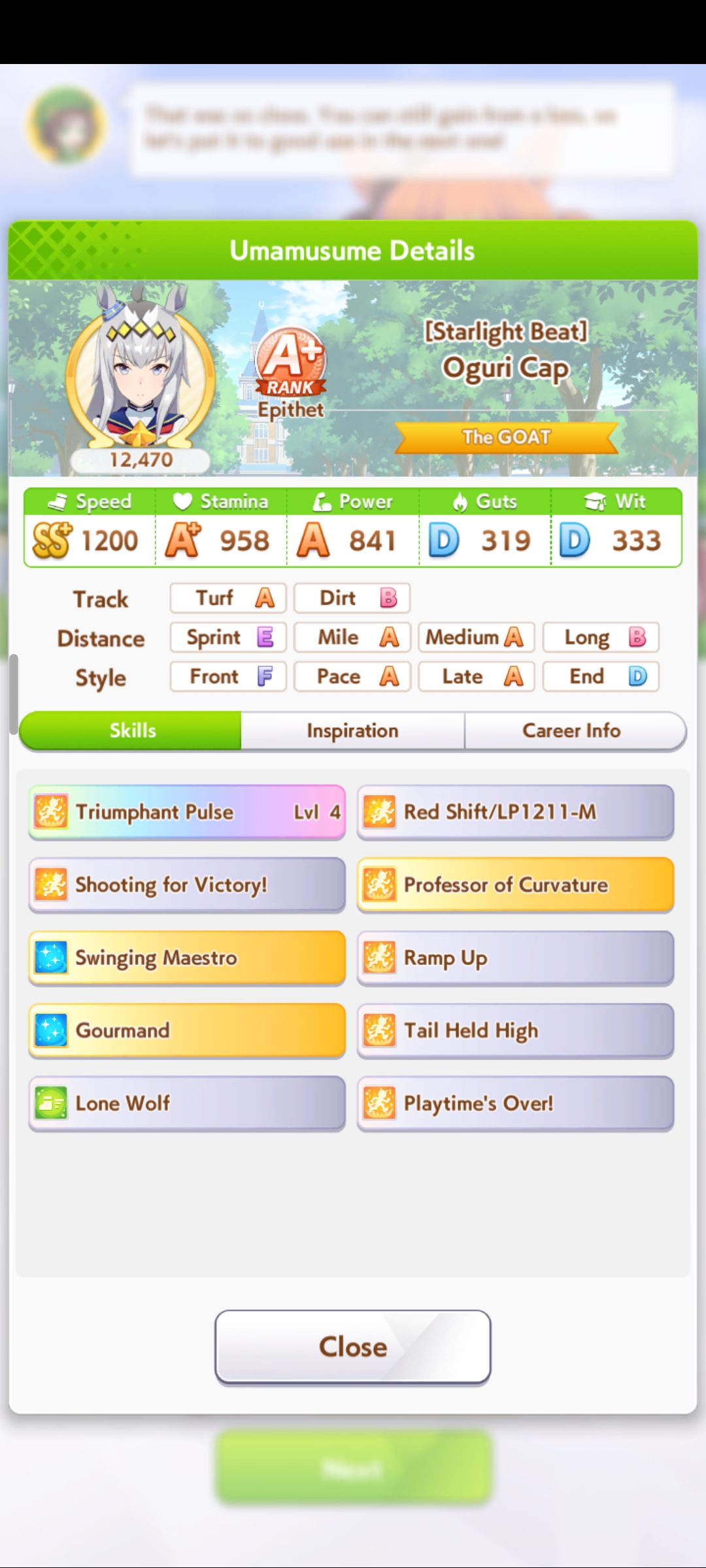 Кстати, вот такая Бакусин не осилила Уру. Да понимаю что играл вообще не серьёзно, подбирал лишние гонки абы как, даже на радужках, не парился с родителями, лишь бы миля была А, и вообще взял только для того чтобы ачивку в ивенте закрыть, там спринт был который я еще не бегал, но всё-таки. Даже за неё что бы пройти надо напрягаться, при всяких Китасанах млб и т.д.