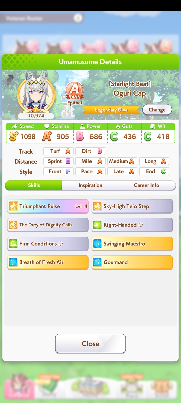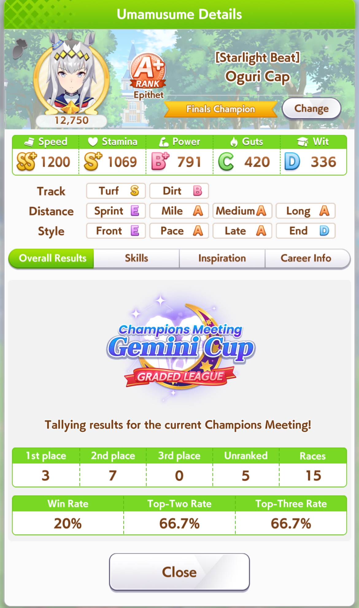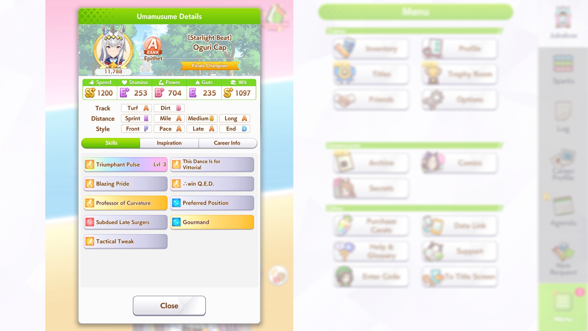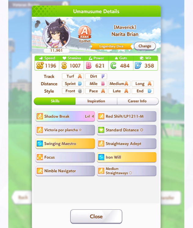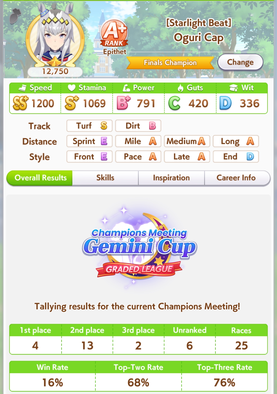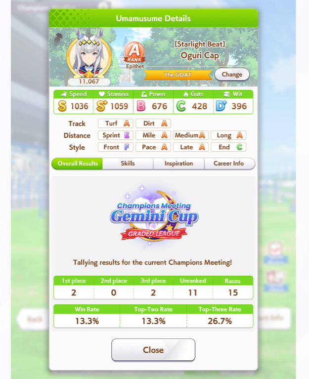 Кстати, вот такая Бакусин не осилила Уру. Да понимаю что играл вообще не серьёзно, подбирал лишние гонки абы как, даже на радужках, не парился с родителями, лишь бы миля была А, и вообще взял только для того чтобы ачивку в ивенте закрыть, там спринт был который я еще не бегал, но всё-таки. Даже за неё что бы пройти надо напрягаться, при всяких Китасанах млб и т.д.