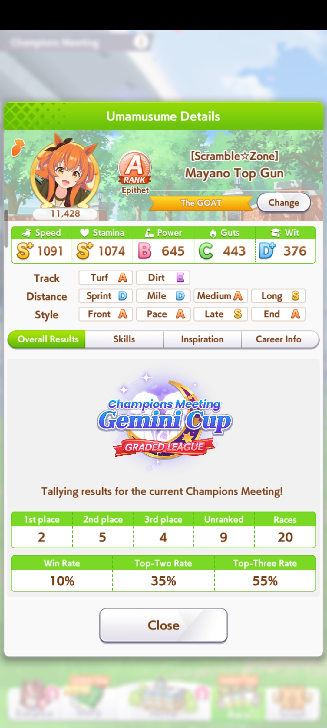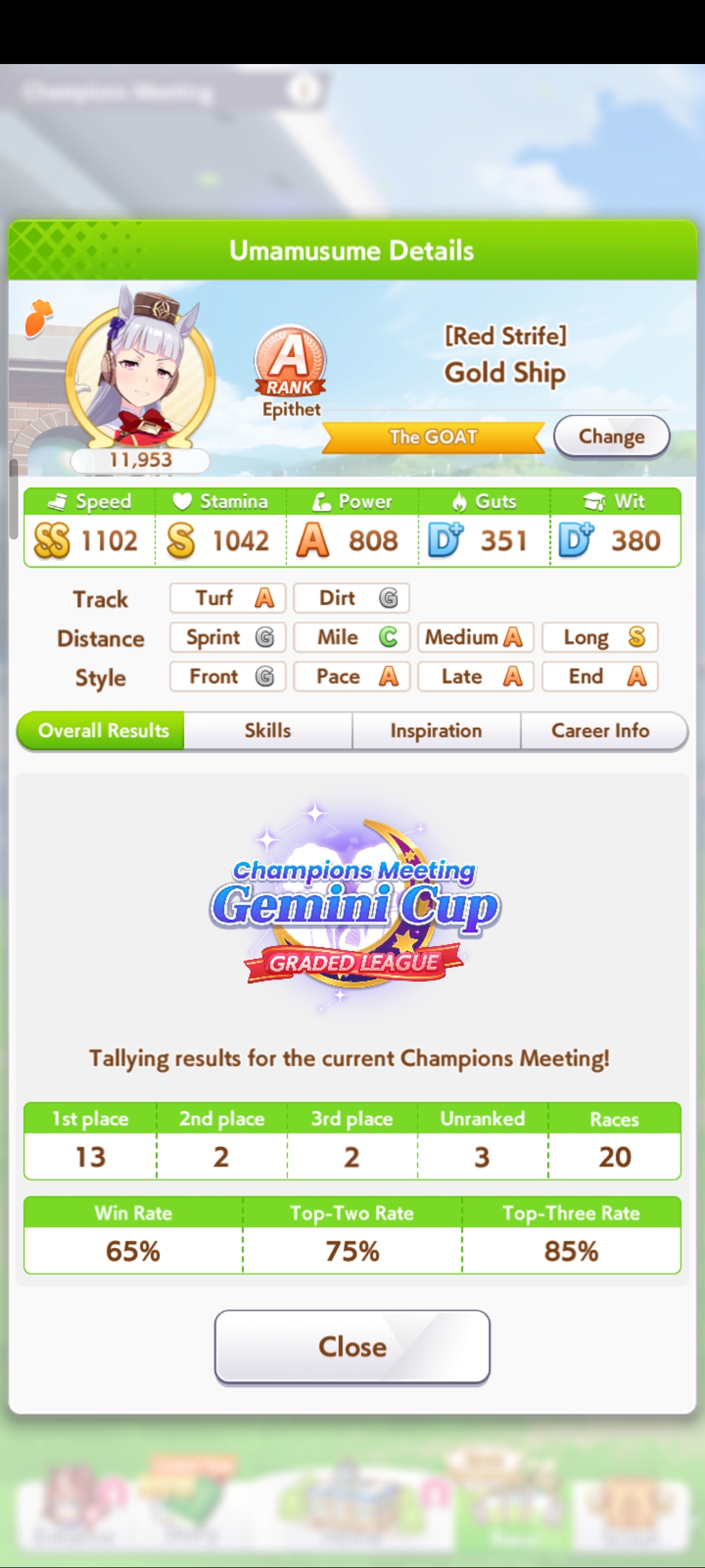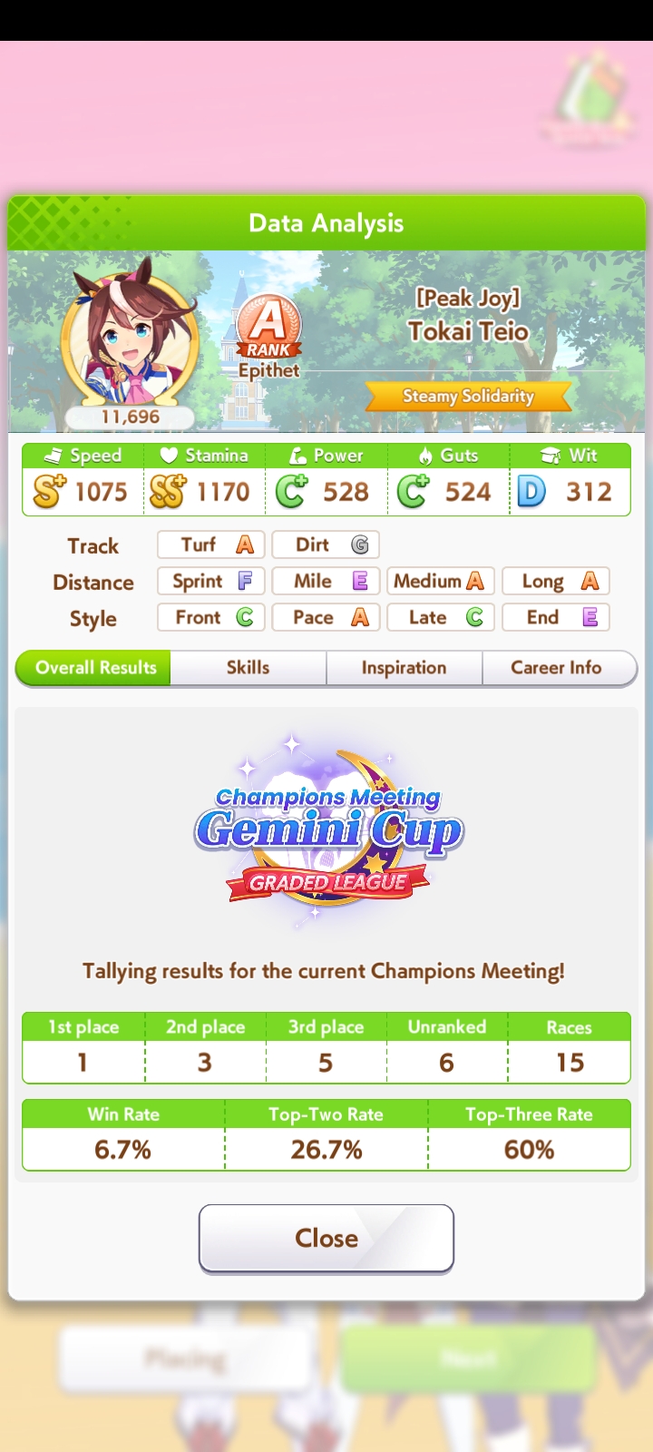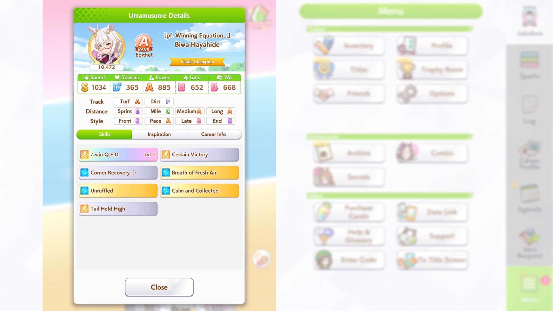 Кстати, вот такая Бакусин не осилила Уру. Да понимаю что играл вообще не серьёзно, подбирал лишние гонки абы как, даже на радужках, не парился с родителями, лишь бы миля была А, и вообще взял только для того чтобы ачивку в ивенте закрыть, там спринт был который я еще не бегал, но всё-таки. Даже за неё что бы пройти надо напрягаться, при всяких Китасанах млб и т.д.