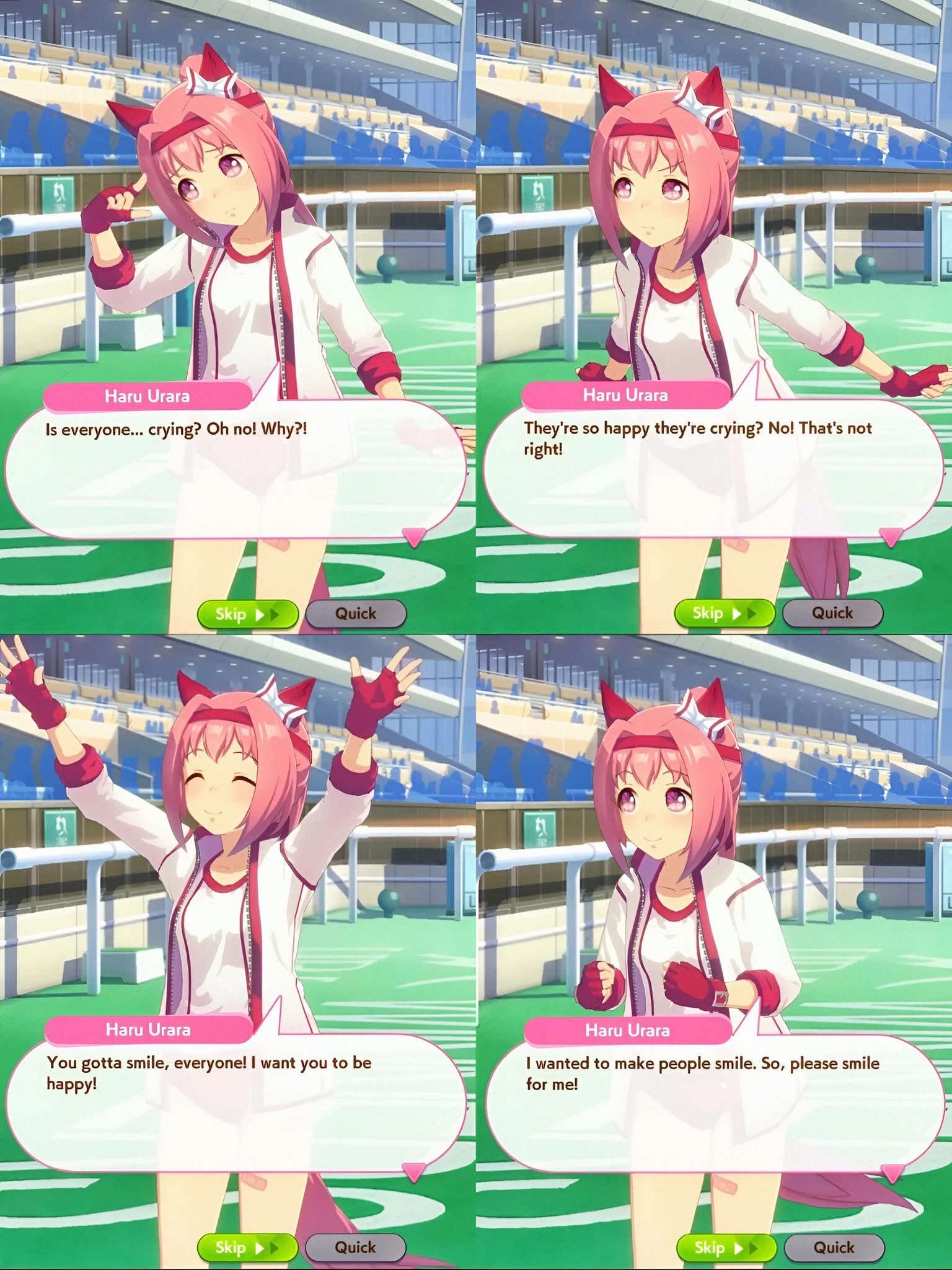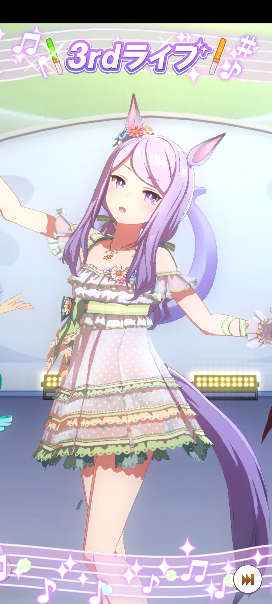 Вообще логичней было бы если бы было два костюма - обычный для бега и с рюшечками - для лайв выступлений, всё как в жизни, но японцы видимо совсем не дружат с логикой.
