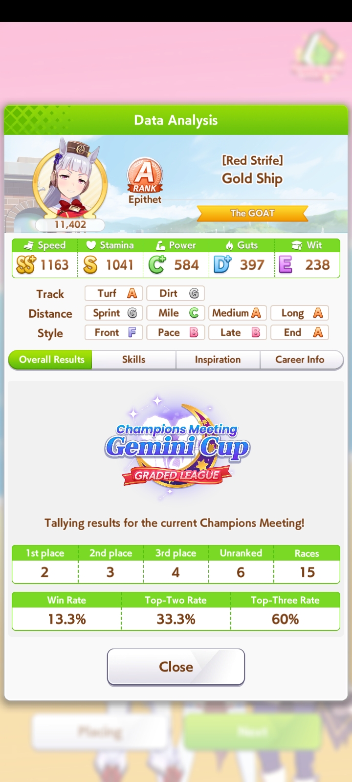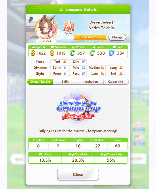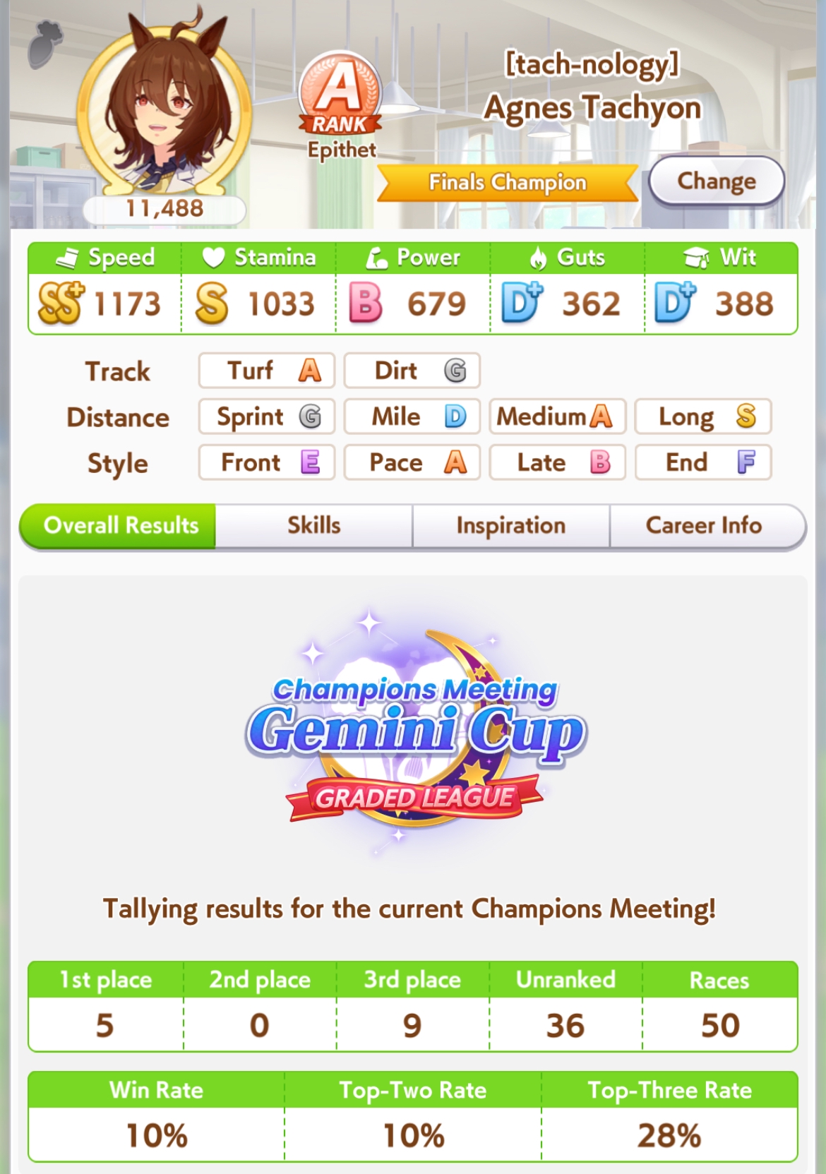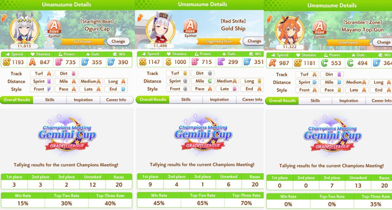 Имхо кста, какие бы статы ни были, ура всё равно рандом прокинуть может. Мне иногда ставило типа не фаворит с 1к спид стамина. Изи выигрывал, но рандом всё равно есть.