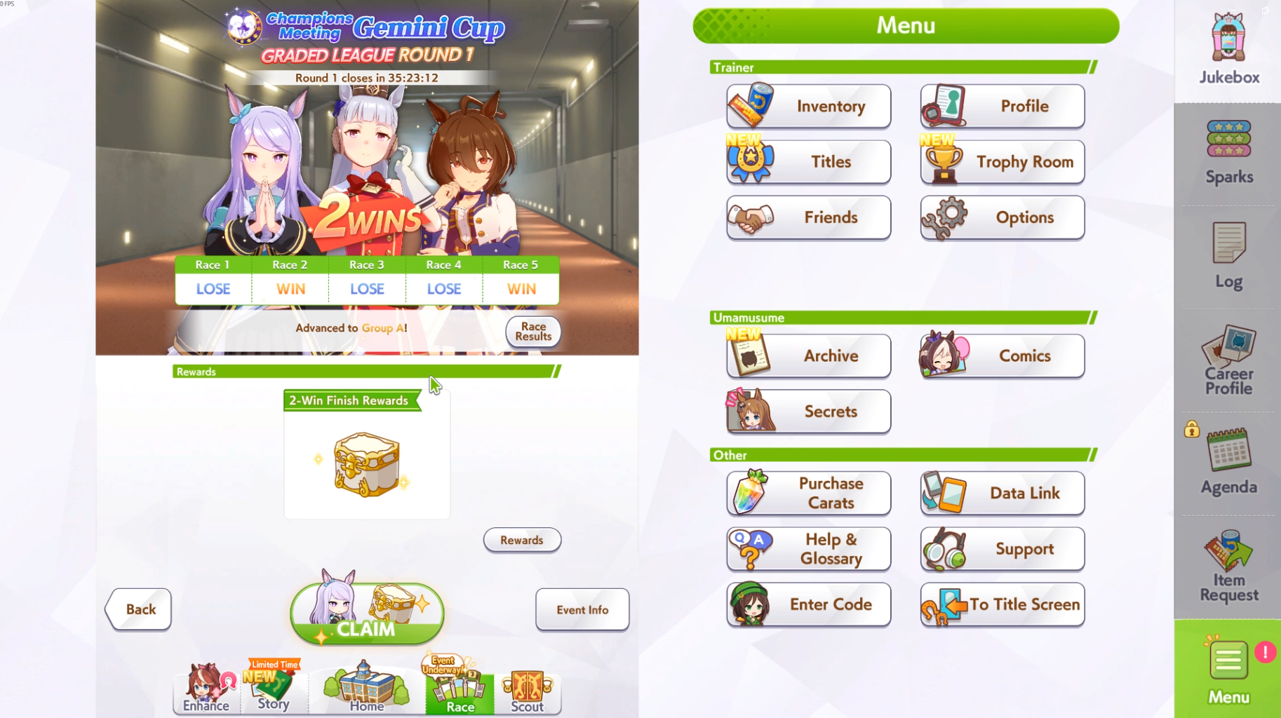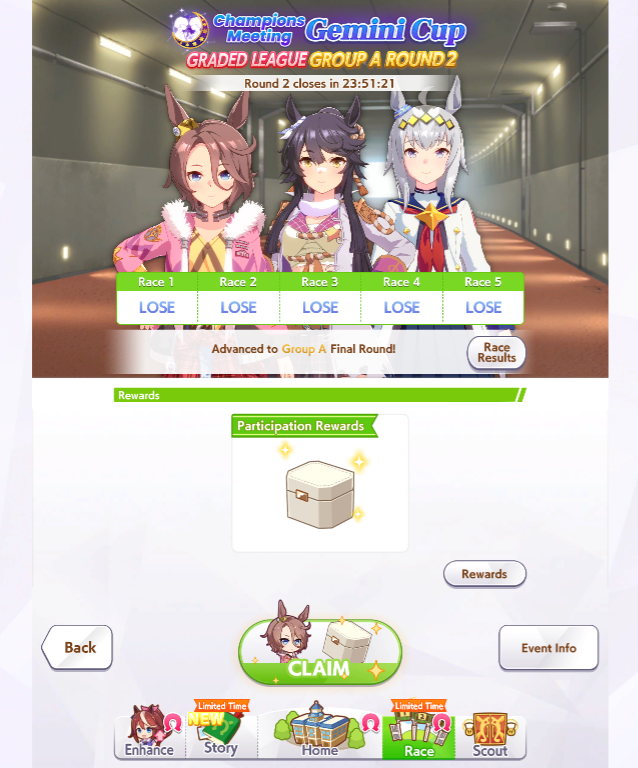 Прошёл в А финал, но впадлу стало играть что-то, буду заходить только на гонки с шардами коняшек и на ивенты с лимитными карточками.