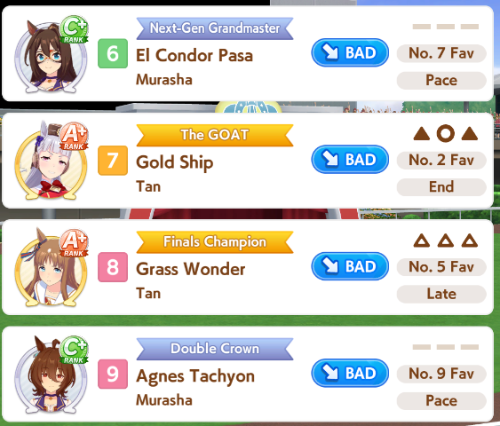 Владелец Дип Импакта и Содаши, например, забыл как его. Поэтому их в игре не будет. А так очень знаковые кони вообще-то, без которых история японского гоночного коневодства далеко не полная будет.