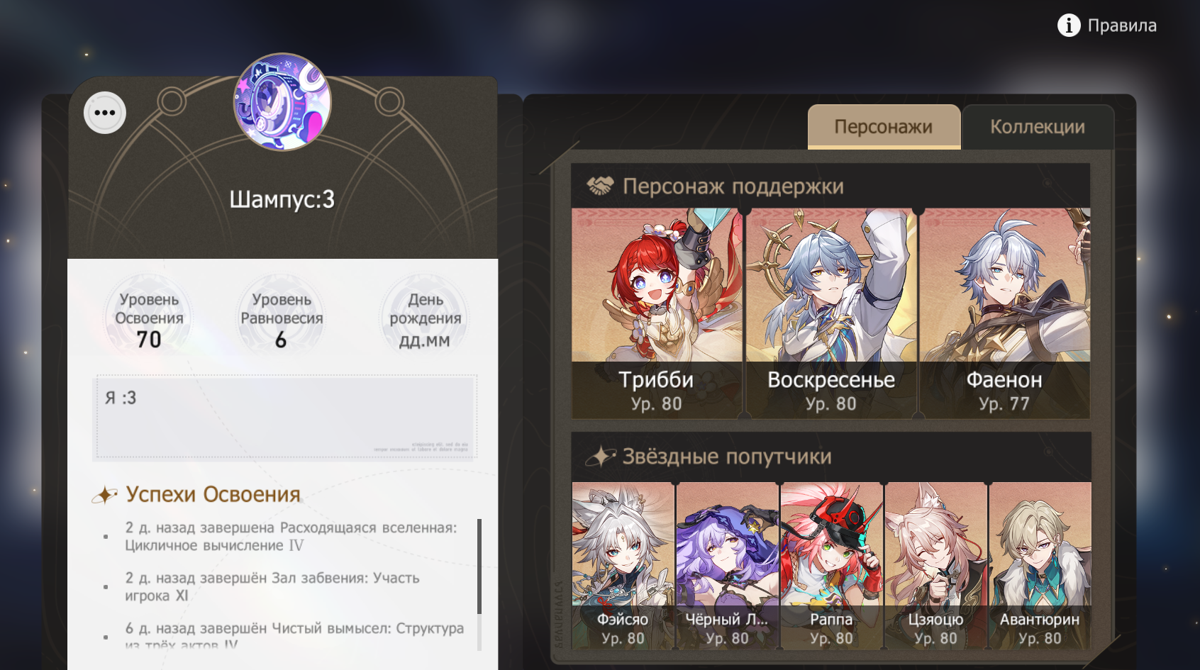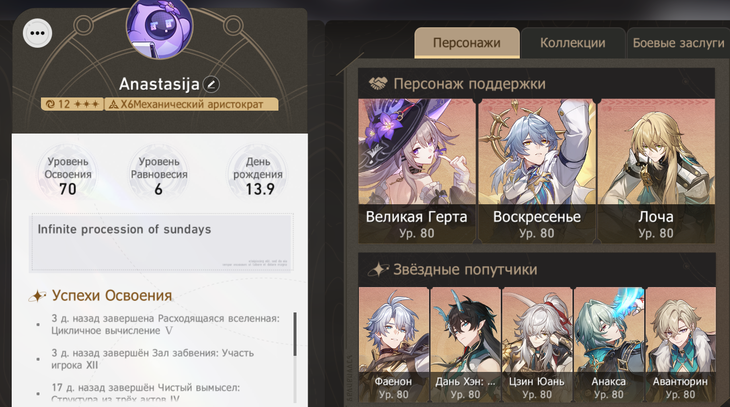 Да уж долго качать персиков до 80 конечно. Месяц фармил на Фаенона считай. А мне ещё надо Арчера, Циньюнь, Керидру, ГГ, Галахера и Жуньмая как минимум. Это я только к НГ раздуплюсь, а там уже новые пачки качать надо будет. Хорошо хоть 2300 смолы накопилось после ухода + бутылки. Не так анально как в Г, но я всё равно думал что побыстрее всё же будет. Кирену с Мартиком скипаю, всё равно ни круток нет ни пачек под них. Буду копить на новых имб в 4.0.