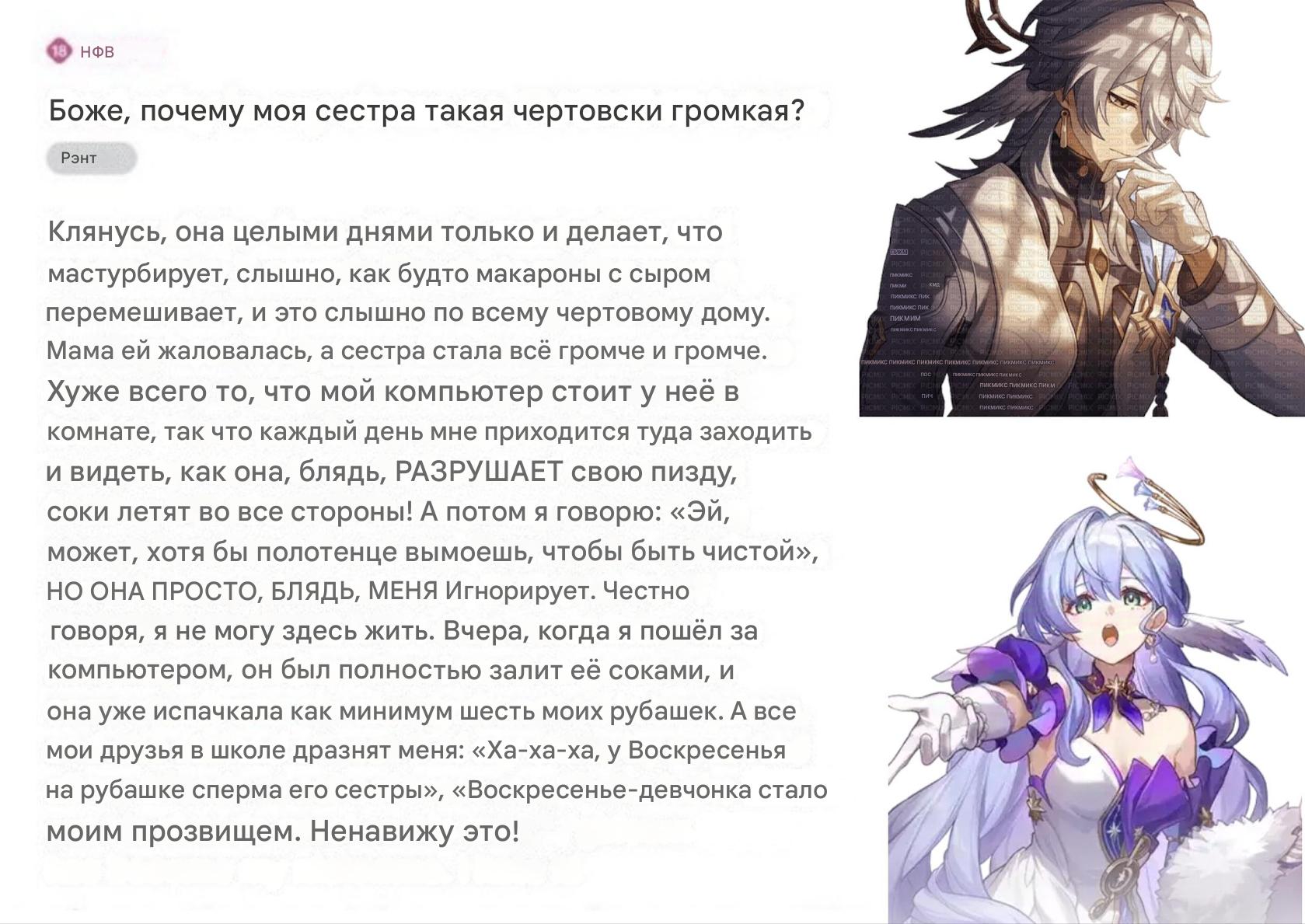 Я регулярно захожу в /hsrg/, и каждый раз спрашиваю, палил ли кто-то трусики Темени из игры Мужевоз. Каждый раз мне отвечают, нет. Я спрашивал уже раз 150 и 150 раз мне ответили нет. Смысл в том, что отвечает мне один и тот же анон, отвечает неизменным текстом. А я каждый раз с разными пикрилами спрашиваю: - Трусики кто-то палил Темени из игры Мужевоз? Может кто-то сфоткал на бетатесте с первого ряда? Очень хочется подрочить. - Нет, не палил никто. Иди отсюда