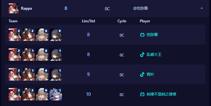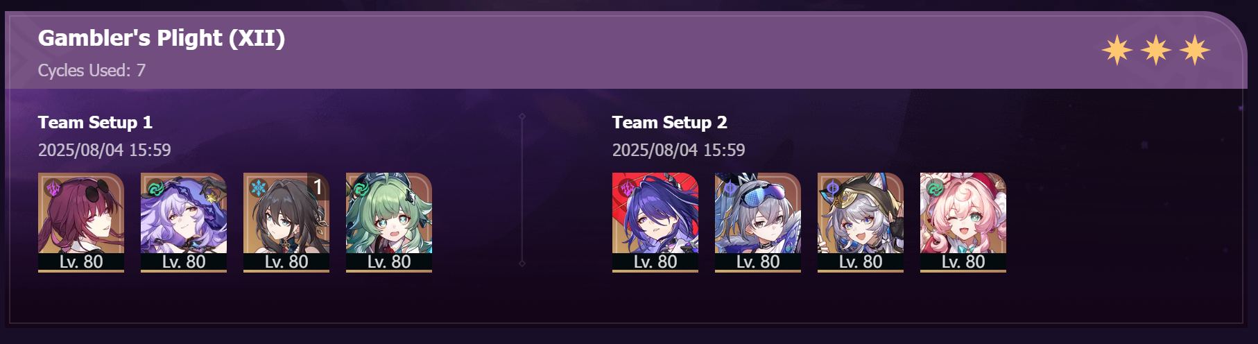 а чего обсуждать? дырка не интересная. от нечего делать потыркал разные составы: Одноглазый закрывает сторону за 1 цикл, ахерон - наверное на 4-5 (там все плохо), бабка за 2-2.5 (первую половину), за 2-3 (вторую). Раппа... за 8 гдет =D (первую половину) Герта все еще закрывает обе половины за ноль - на второй половине авентюрин не успевает засаммонить свои кубики (причем обе фазы). Думаю еще потыкаю условную фейсяо и что-нибудь фтпшное. Если что-то интересное найду - мб даже запишу. ККароче до АпоКа скучаемс. Надеемся на 4-ый режим.