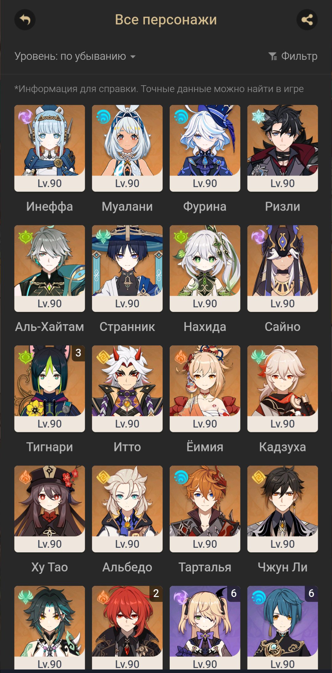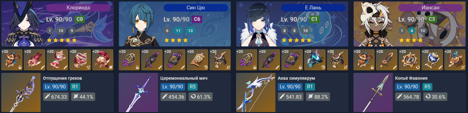 ✦ Показать персонажей картинкой https://akasha.cv/ ∙ https://enka.network/ ∙ Гайды https://t.me/genshin_academy/https://keqingmains.com/
