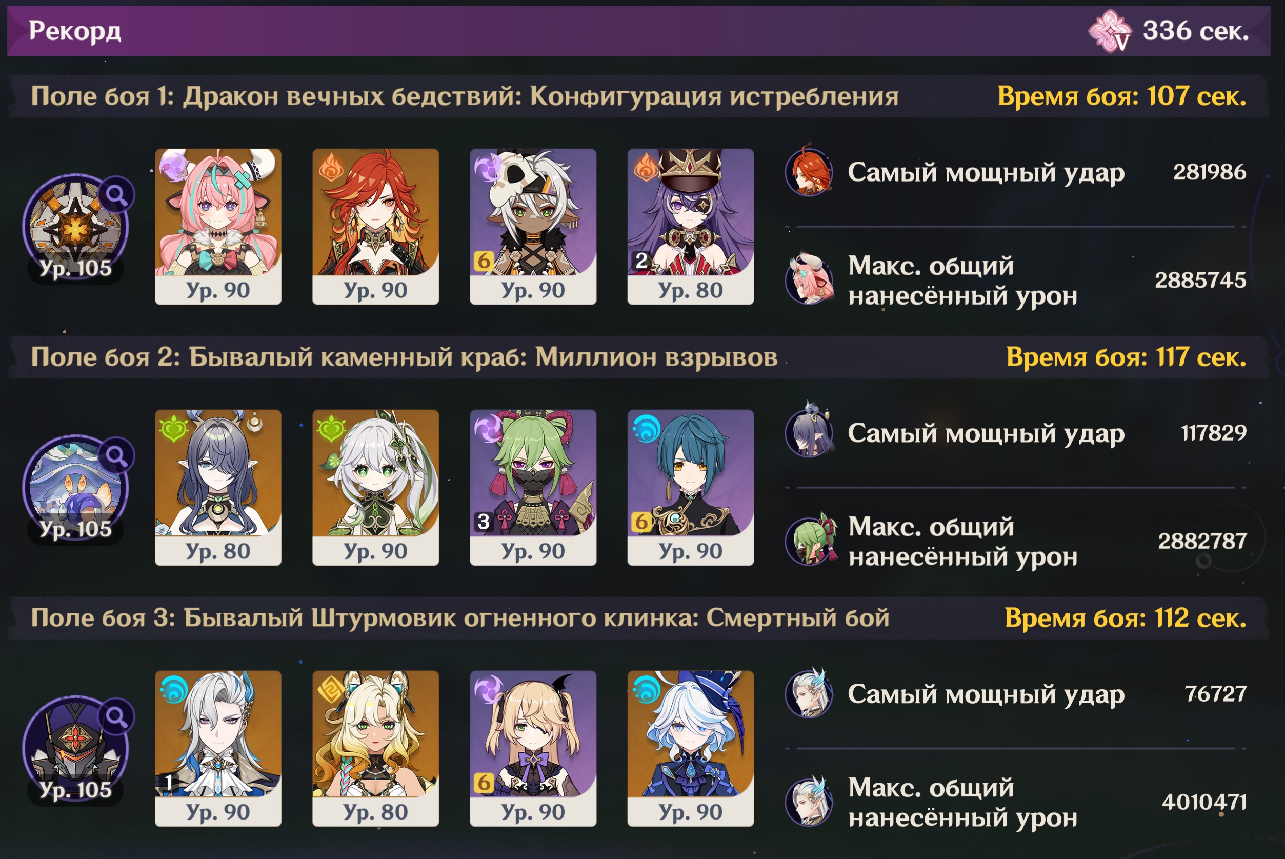Веселый отряд. Синцу(дендро сет Леса) собраный в восстанову. Лума (серенада шелковой луны) Куки(ночь открытия неба)-сет с критом из нодкайфа Ну и 4й Невик или Сахароза. Сет с критом из нодквйфа работает на всех персах и не обязан быть на нодкраевце. Тут будет 30кш как я понимаю и КУ 100. У меня нет артов и попробовать я не смогу((