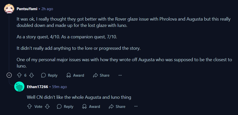 Кстати, в твиттере умеренно побомбили с того, как Ровер давал Юноне пафосные обещания на лавочке в середине квеста, после истории с Фроловой. Как тред на это смотрит? Ровер необучаем? Или просто не видит себя тем же человеком из прошлого цикла?