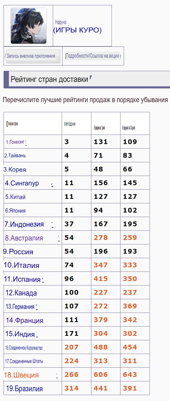 >>5578493 Это данные по выручке (допустим певрое место принесло 100к, второе 80, третье 70 и тд) Или просто какое место занимает в сторе определенной страны? (получается то что выше необязательно приносит больше денег, а просто обошло продажи других игр в своей стране, и тогда понятно почему рфия довольно высоко, когда часть игр просто недоступна) Просто мне тогда не ясно, почему Писевор так жмотит русек, хотя щас с нейронками наверно 2-3 человека нанять надо.