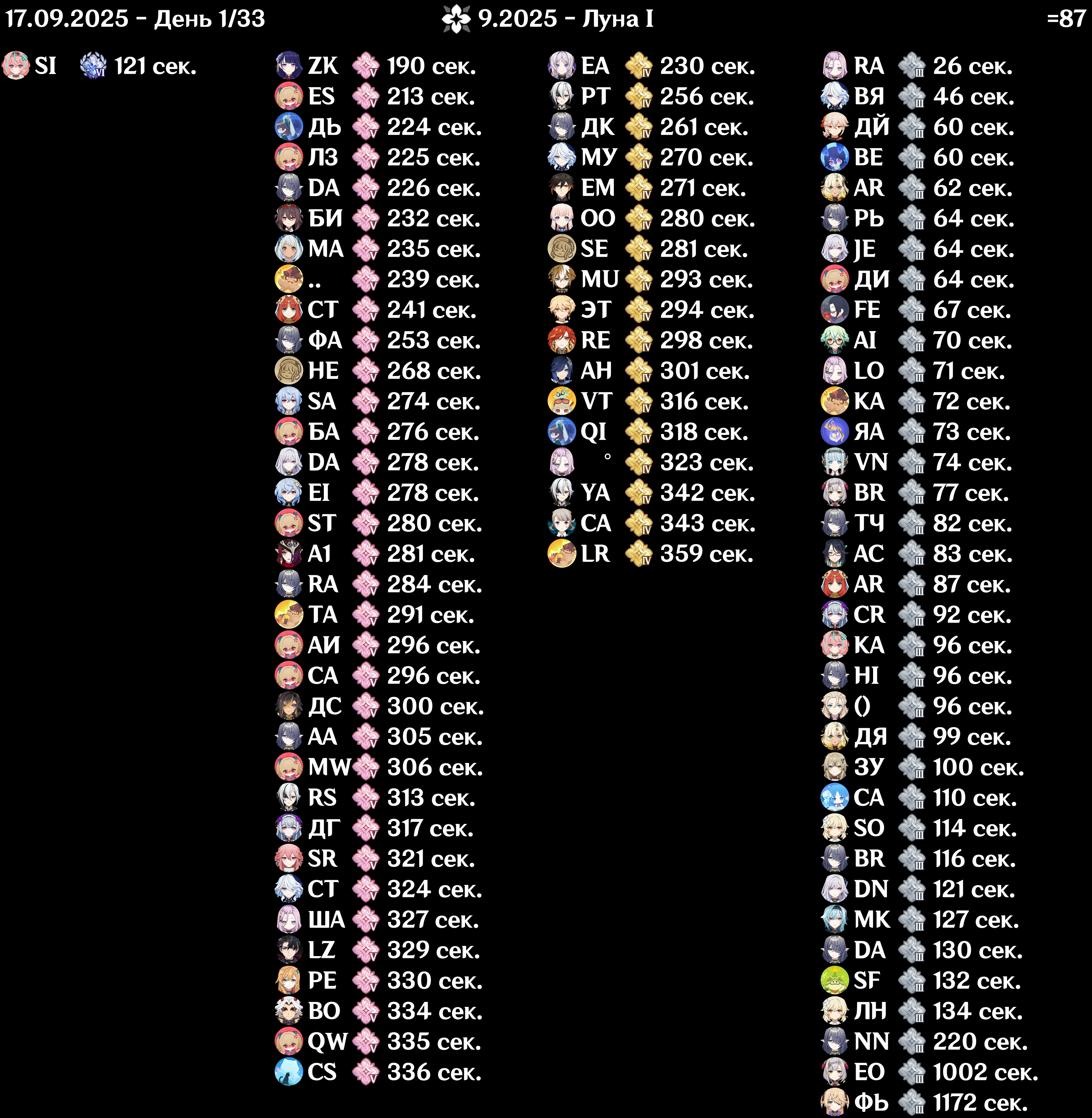 Кста, затестил пачку с Куки с ключом и с6 Фурой вместо Нилы и Кокми и время ушло за 102 сек. А вот если просто поменять Кокми на Фуру, то можно за 81 закрыть!
