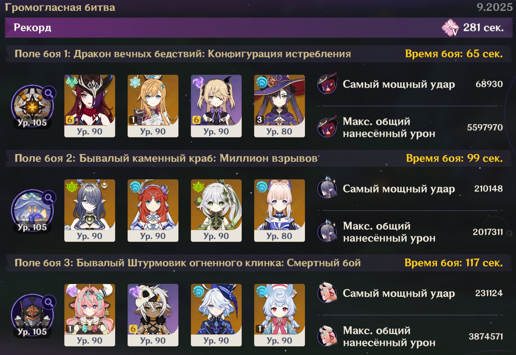 >>5578761 Ну, дракона в конце концов я на с0р0 осилил, пусть и пришлось мопеду перебрать арты, чтоб максимум к.у. выжать, а криты тупо нароллить. Почти полминуты улучшения, лол, просто потому, что ульты на 2-3% больше выдавали дамага. Краба можно и быстрее - Лабуба еще недокачана, Фурина не в МС и так далее.