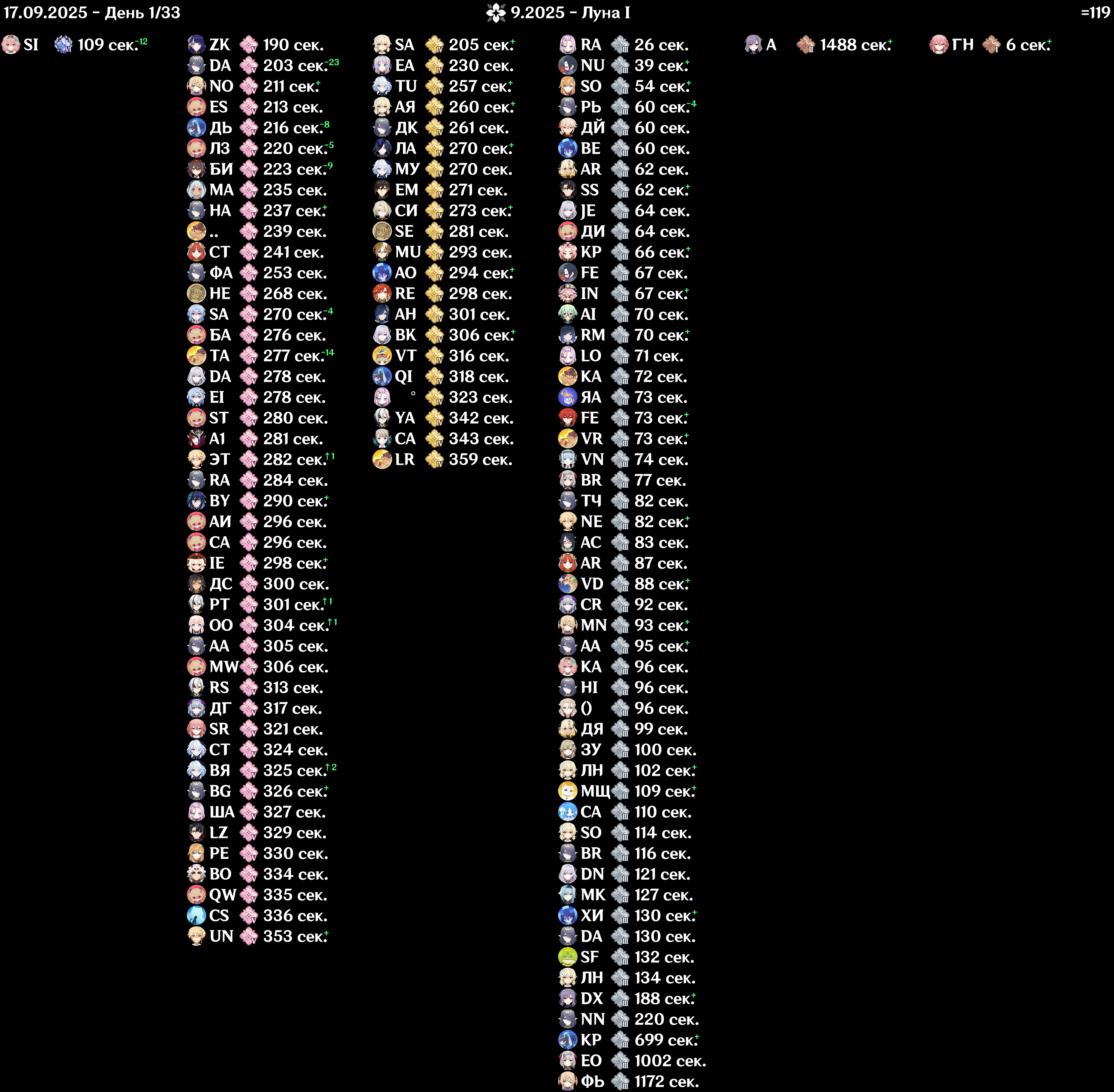 Подождите, если для Нефер нужна зеленая роса, чтобы сделать вместо обычной чарджухи игру химер, то нам надо 3 росы, по росе за каждый чардж в стойке, а у стойки 2 каста есть, значит 6 росы? Каждая ведь делается раз в 2.5 сек. А еще надо росу для Лаумы, если мы хотим продлить эффект ульты. Или для особых заряженных атак Нефер нужна буквально 1 роса для всех 3х чарджух, значит и суммарно 2 всего?