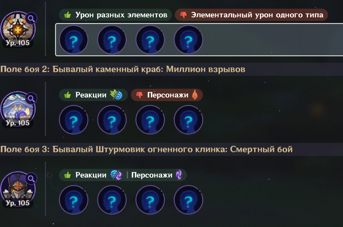 Это пиздосики. Самая кокблокнутая хуйня. Без пылесоса и лабубы не проходиться. Даже мявка нигде не поможет, только Часка как обычно адоптируется ко всему. В общем на второй этаж нельзя брать Мявку, просто нельзя за одно включение ешки она умирает. На третьем этаже нужна Инеффа без нее щит сбивать это пиздец, тут на помощь приходит коровка и проходит этого босса, но с пылесосом щит спадает чуть ли не моментально. Но самый пиздец этот ебучий краб, который проходиться только бутонами... я в ахуе, если раньше я проходил 5 натиск и даже на 6 брал этажи. То сейчас дикий кокблок, так еще и Мявку нельзя никуда взять. Ляо сделал ставку на кокблоки, чтобы паймоны крутили всякий мусор по типу Лабубы и Чмырила