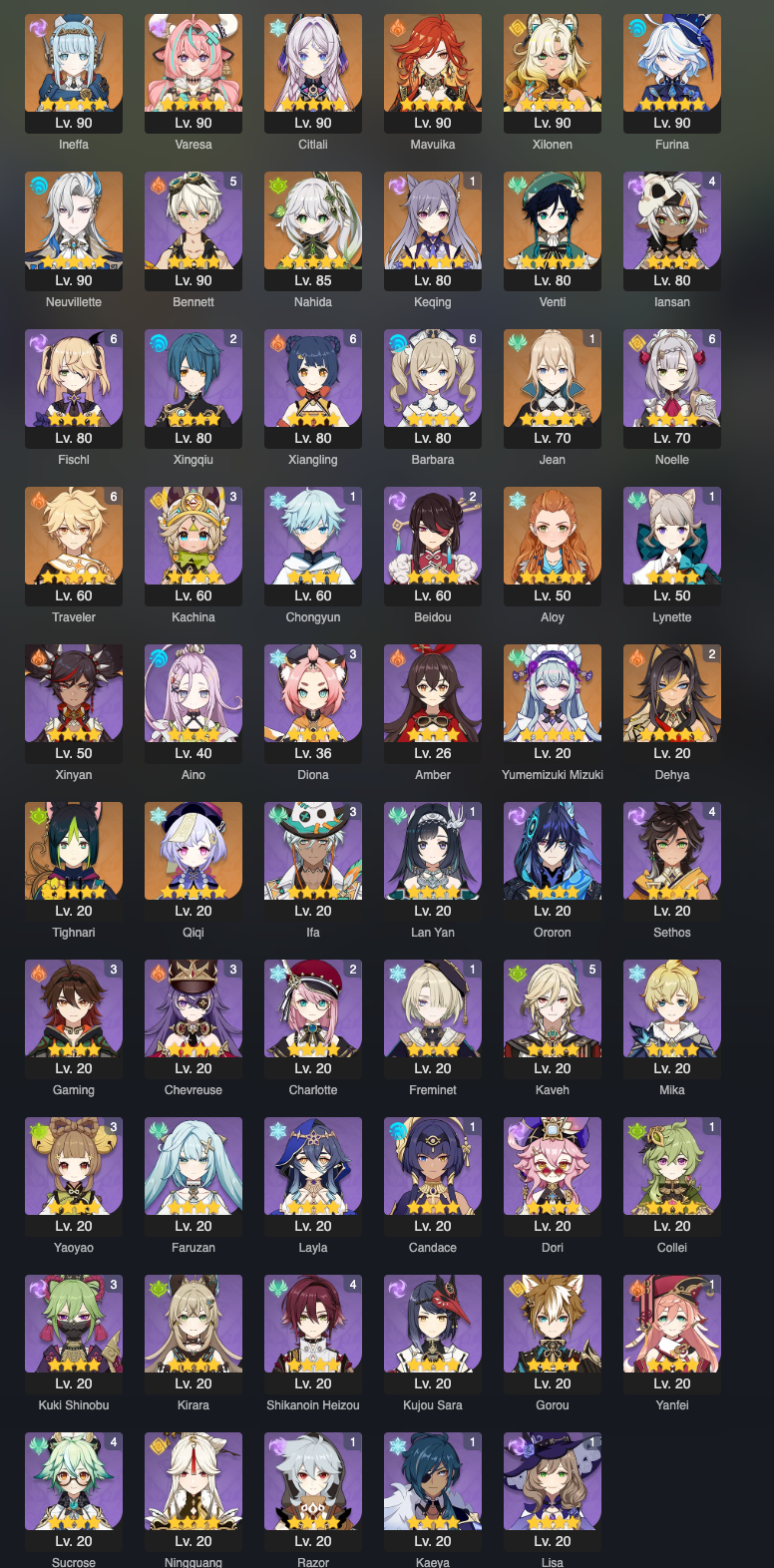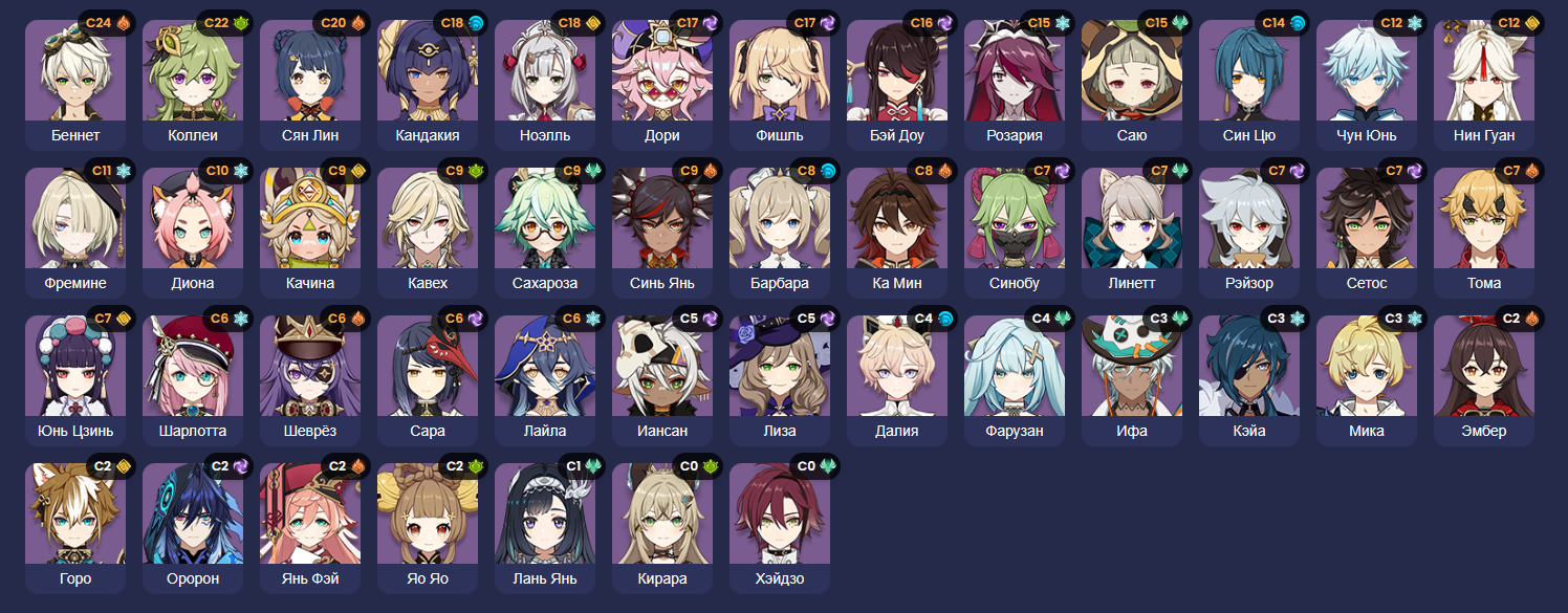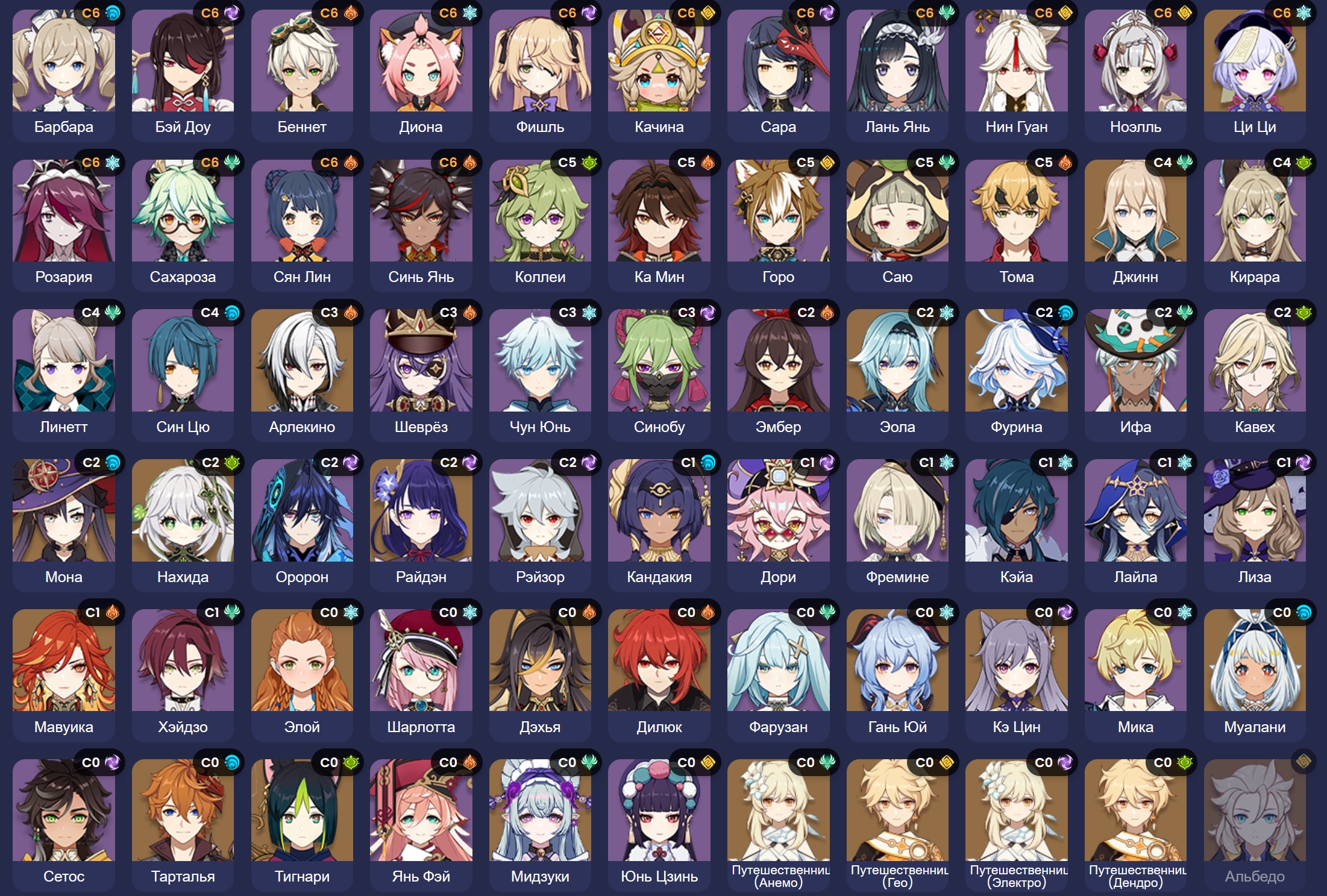 ✦ Показать персонажей картинкой https://akasha.cv/ ∙ https://enka.network/ ∙ Гайды https://t.me/genshin_academy/https://keqingmains.com/