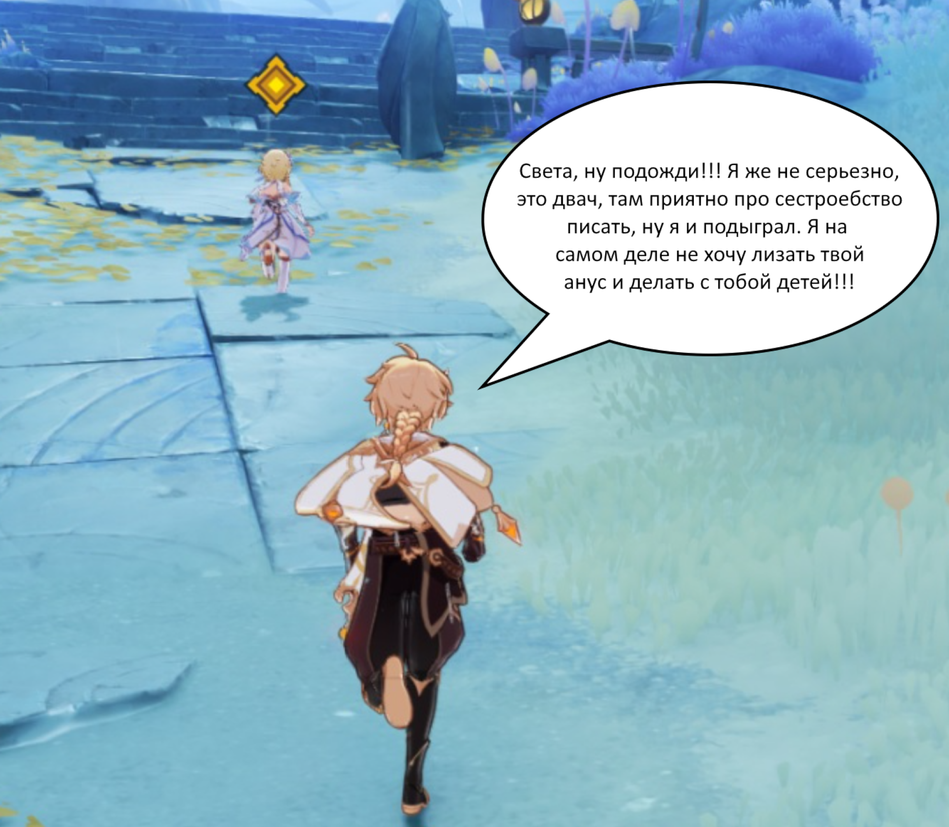 Кстати говоря пройдя последнюю сюжетку я таки убедился в правильности канона что наш главный герой это чмоня, и мы ищем сестричку. На стороне бездны нормально смотрится только Светка. А наоборот - искать чмоню... Это как то не то. Чмоня на стороне бездны вообще не смотрится. А вот то что чсвшная светка блядунья которая вечно убегает и бросает братика - канон.