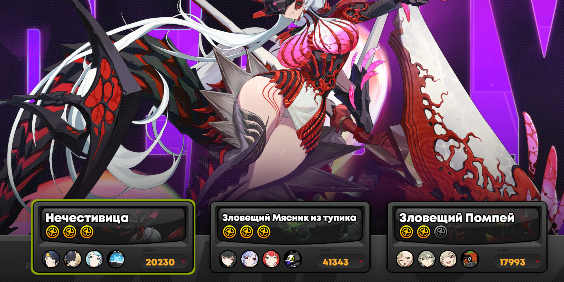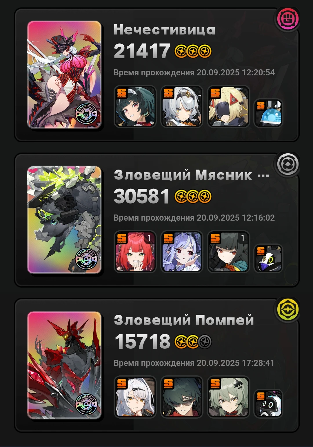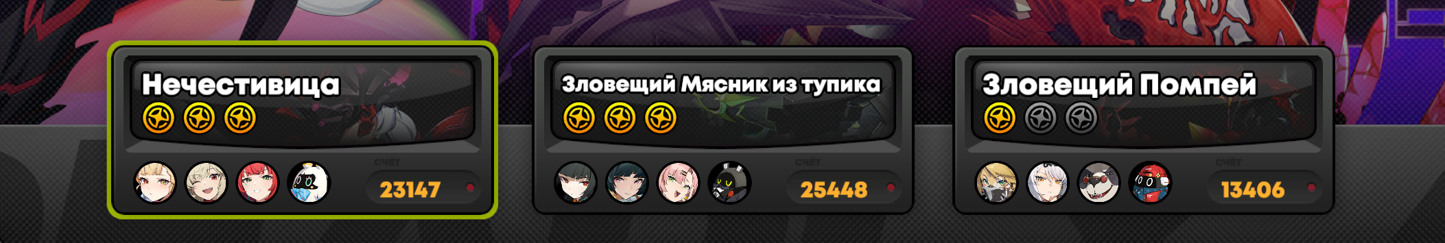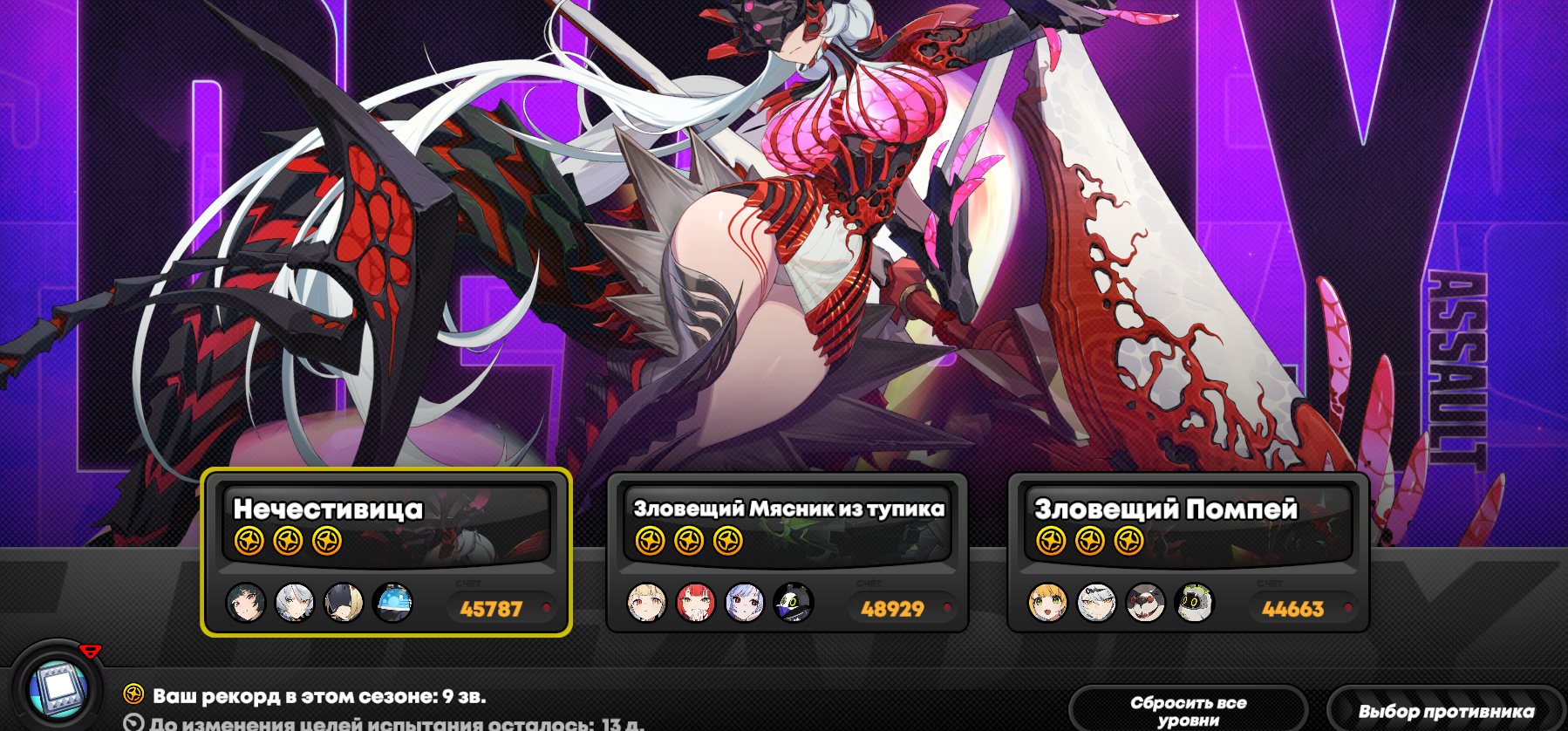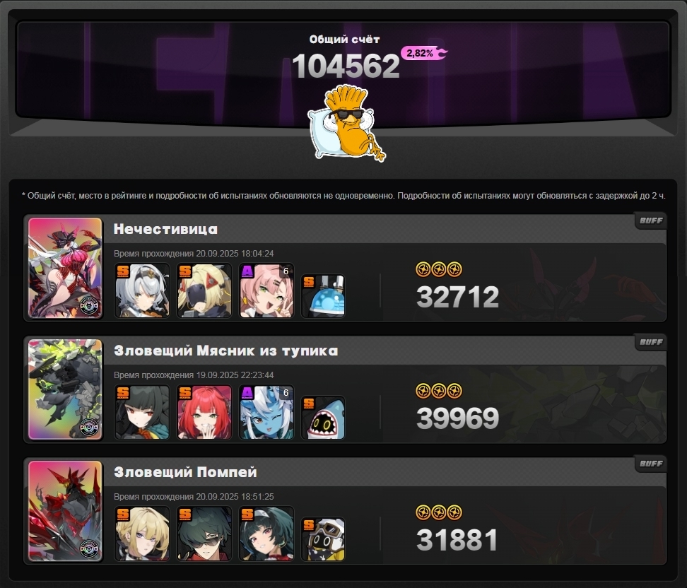 Моя команда по набору 13к очков слаженной правильно собранной тимой со знанием уязвимостей и кита персонажей против сигнатурного босса с сигнатурными баффами. Артов орфи у меня вообще не оказалось, держите скриншот.