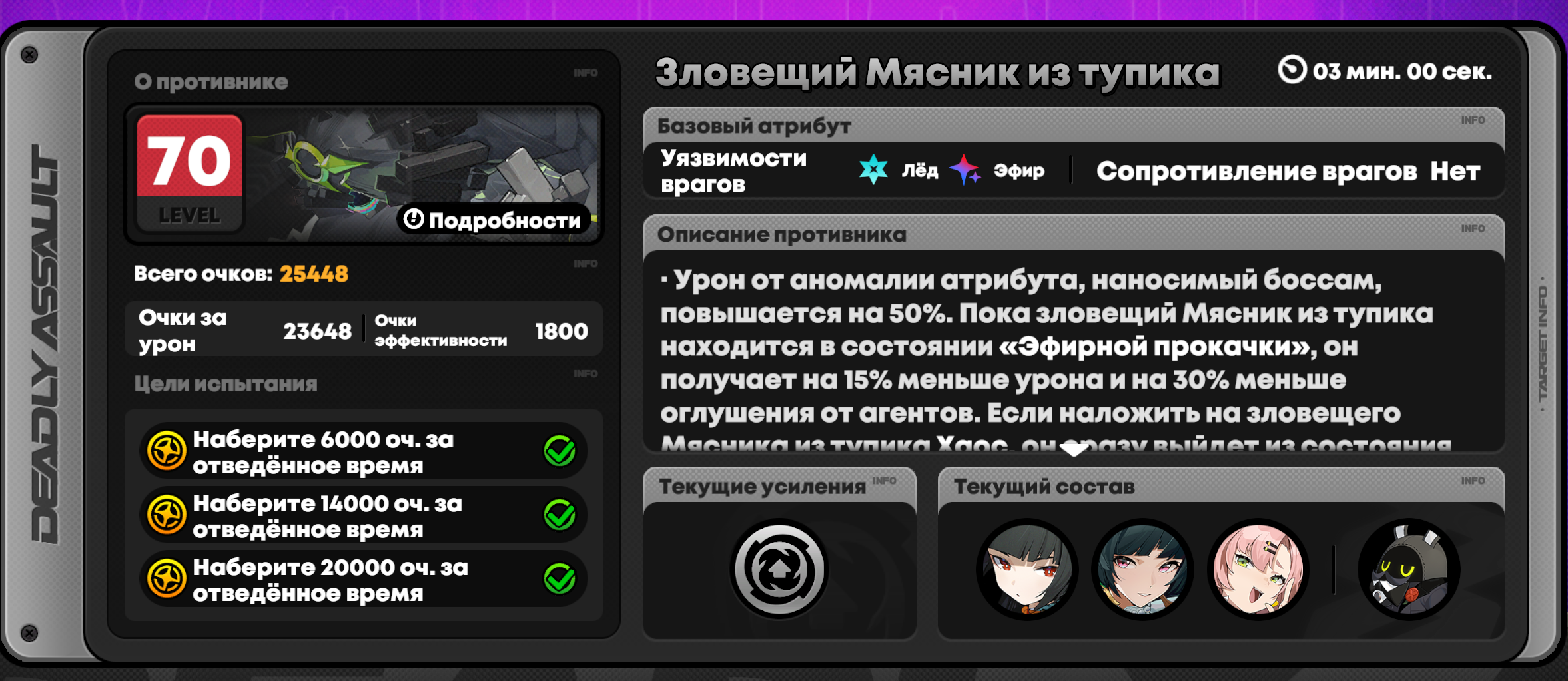 >>5596978 Ну этот босс под аномалистов (пикрелейтед). Урон под атрибутом аномалии увеличивается на 50%. Наколпление стана уменьшается на 30% и урон на 15% пока не прокнет хаос. Т.е. мясника просто не выгодно бить не аномалистами. Даже условная Янаги мимо уяза будет лучше.