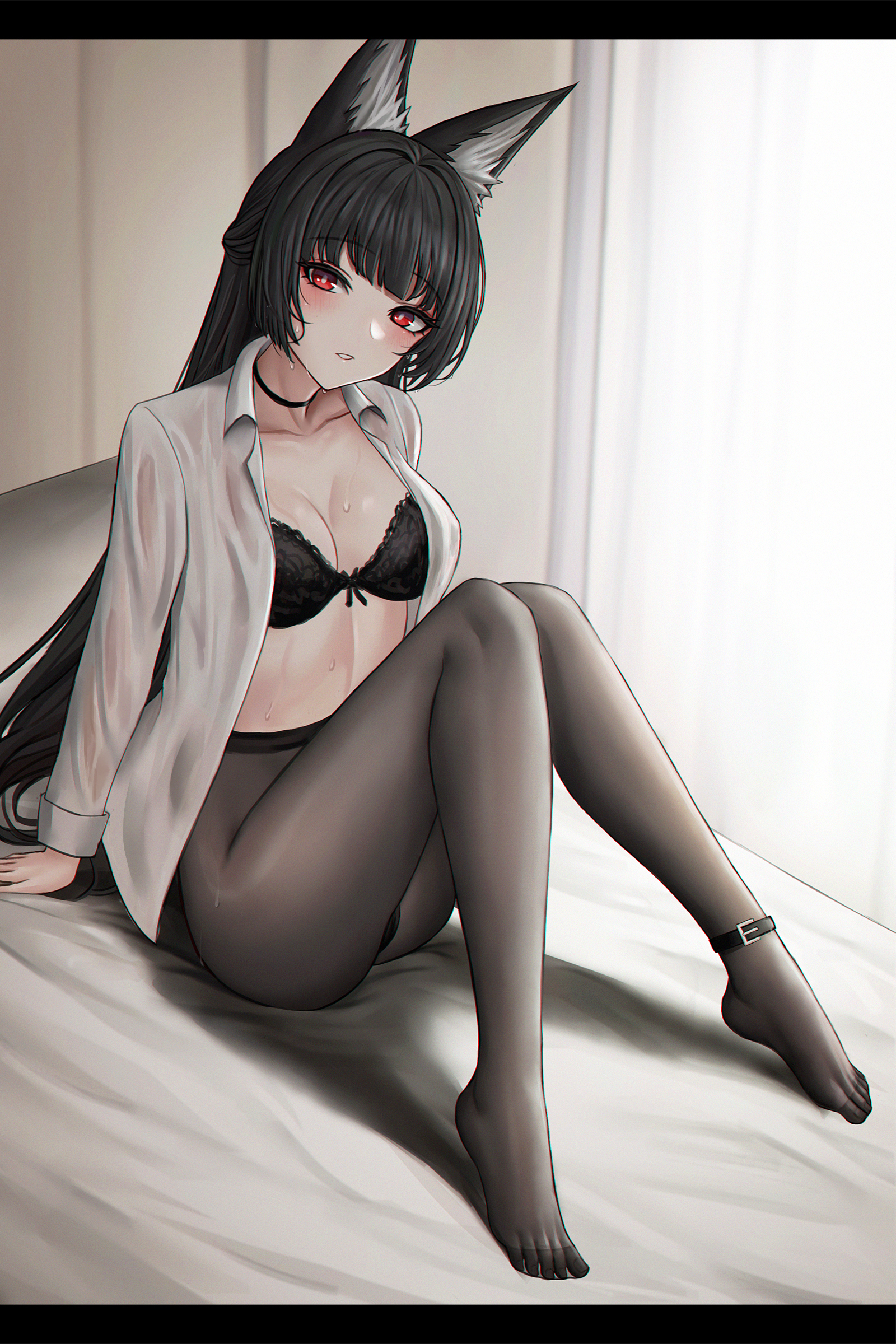 Почему у нее кстати колготки рваные. Или это не калготки, на одной ноге подвязки, получается чулки. Хотя другой - цельным. Получулок-полуколготка получается.