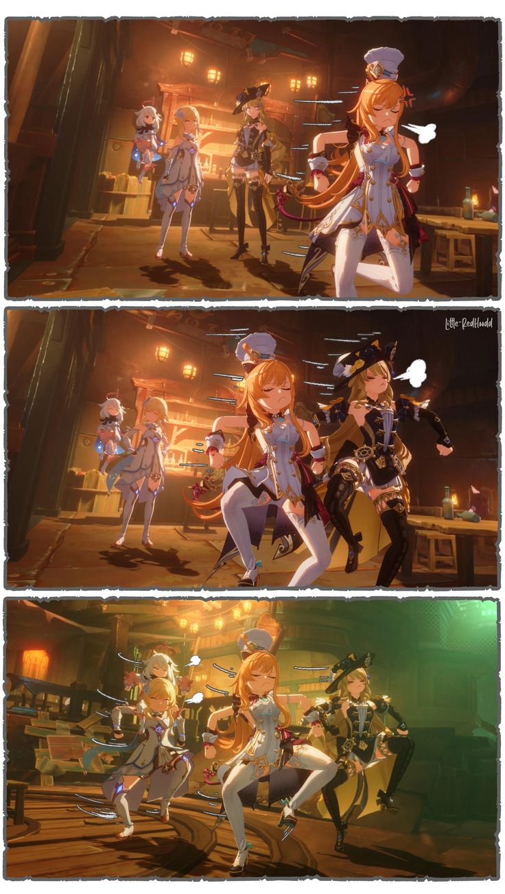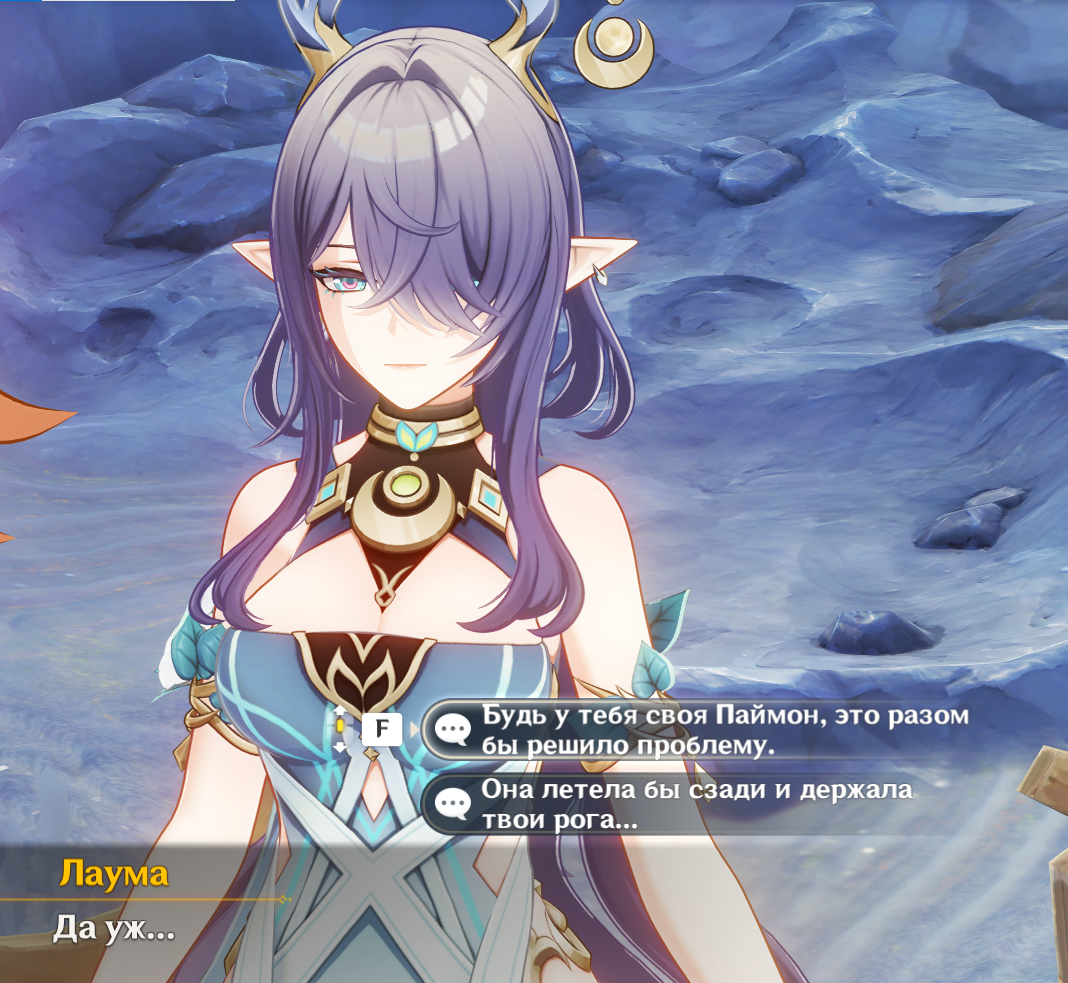 Когда паймонам удобно, они готовы забыть что Лаума потомок Гиперборейцев и у нее резист к холоду. Она буквально в трейлерах стоит по пояс в ледяной воде и ей все равно. Но нет, она видите ли одета не как фемцелка, поэтому надо нацепить на нее пуховик чтобы скрыть не только сиси, но и всю фигуру