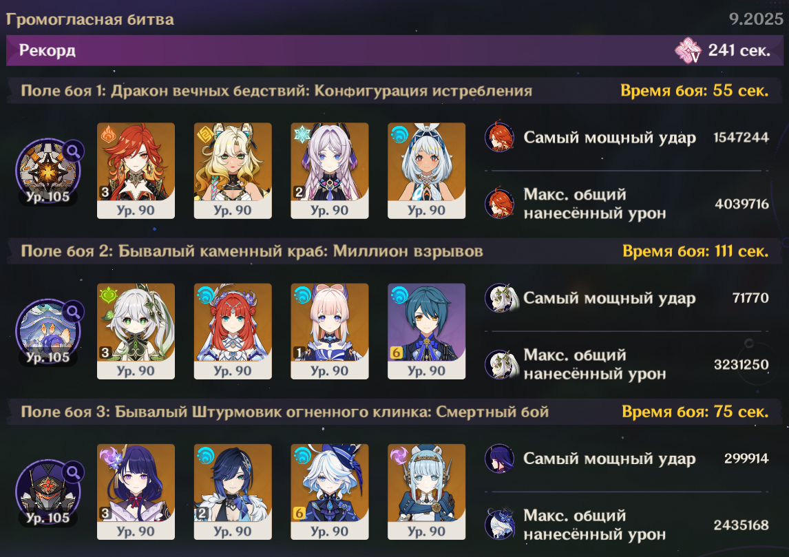 >>5599033 Хотелось именно Нилу-блумами без Лаумы попробовать. В общем получилось, но только когда в первую половину взял Инеффу - таймер сразу -20с, что и дало необходимое время для обычного Нилу-блума (без констосигн). Ну и Мидзуки затащила даааааа! Кто скипнул мои соболезнования, имбу пропустили. >>5599051 >>5599055 >>5599068 Дак и так понятно, что топ-1 имба Мявуика затащит. А вы классическими Нилу-блумами попробуйте.