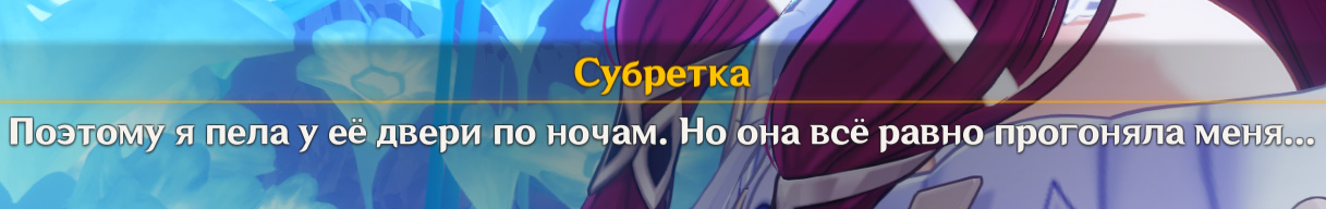 >>5598922 У неё своя форма аутизма, такое непонимание того, как люди меж собой взаимодействуют нормально, всё-таки лунная девочка, воспитанная кое-как фатуями. К тому же наконец-то вбрасывает сюжетные моменты, про фатуёв рассказывает, как там у них всё во дворце. И духов воспитывает.