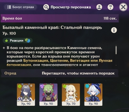 >Upon taking any type of Bloom DMG, Hermit Seeds will be converted, dealing DMG to the Boss equal to 500% of Bloom DMG taken, but not exceeding 1500000.