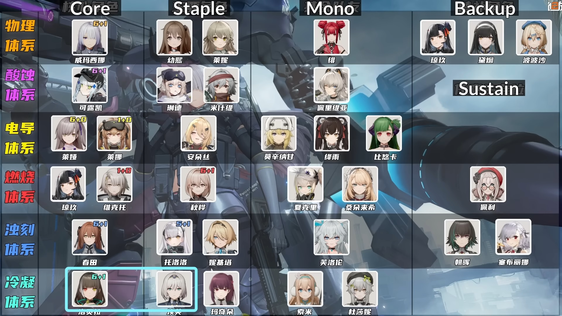 Helen Introduction: Freeze element, Bulwark class, uses a shotgun. Basic attack deals Freeze damage. Passive: Increases Max HP and defense, dispels debuff(s) on self, and restores a fixed amount of HP. The more instances of damage Helen takes, the more buffs she gives herself. Ultimate: Selects 1 ally and increase their attack and defense, as well as reduces Ultimate cooldown of Freeze-element allies. After using this skill, Helen gains [Extra Command]. Skill 2: Provides allies a Shield, generates Freeze tiles, and dispels debuff(s) on allies. After using this skill, Helen can perform an additional attack. Skill 1: Converts damage taken by allies and converts it into [Extra Command](?) Weapon: Increases the user's defense and damage dealt with basic attacks.