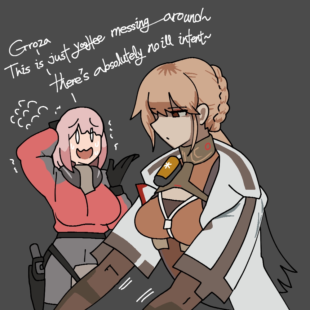 Зачем вообще крутить других кукол, когда есть красивейшая HK 416 Клюкай? Лучше потратьте крутки на апгрейд её пушки в R6 и на её прекрасную любящую сестрёнку Белочку. А затем на их скинчики, купальник в скиногаче для Клюшечки и костюмчик суккуба для Белочки. (cообщение для поста на 2сh.su/gаchа , перед постингом удалить сообщение в скобках. Картинки приложить из архива. Оплата в виде 15 коллапсов за каждый купленный мой скин + бонусом дам грудь потрогать за каждый скин сестрёнки в скиногаче. P. S. С любовью, Белка :3 )
