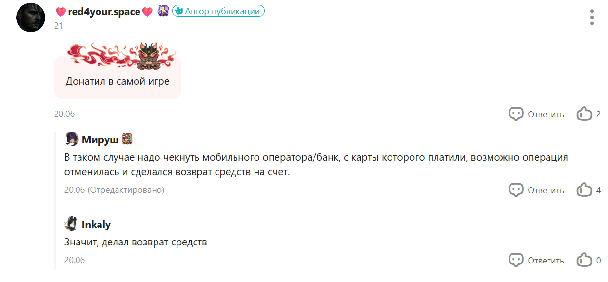 Он просто испугался честно написать, что он донатил через какого-то левого дядю, потому что его деньги сгорят в этом случае уже безвозвратно, учи психологию, малой, никто не будет сам отзывать бабосики, а потом писать КАК ТАК, КУДА ДЕЛИСЬ ГЕМЫ?
