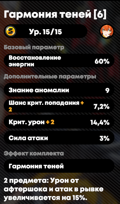 >>5620645 У неё несколько билдов: 1. Всё в личный урон из кармана - максишь не восстанову, а криты, атаку. Т.е 6й диск на АТК. И 4+2 артефакта тоже на личный урон, можешь все 6 на афтершоки поставить комплект.