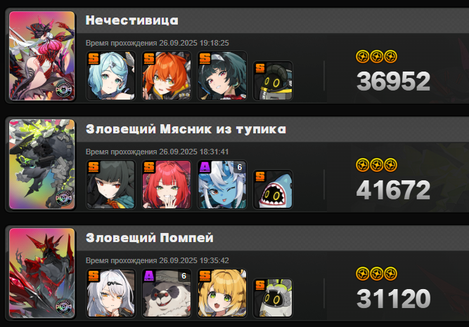 Вот этих не советую. Орфи тоже под вопросом. Многие почему-то говорят что отлично играет со всеми дамагерами, но чую что это тоже полная хуета. В нормальной пачке для нее тупо нет места, а если и впихнуть то не так эффективно как условная Астра/Юшка или еще какой-то саппорт/станер/аномалист. Поэтому играет только с Сидами, Бургерами.