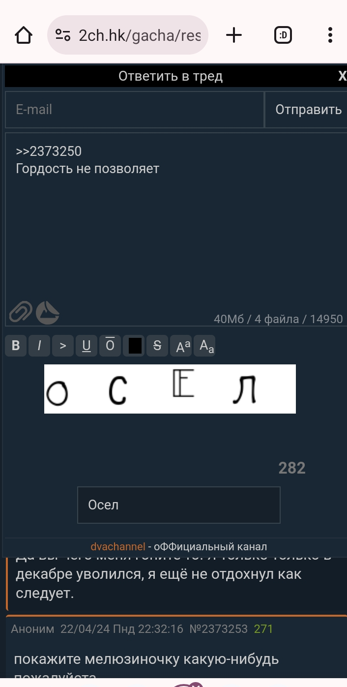 >>5633193 Да, забавная была капча, правда с неё больше бугурта было... Ну там "о" маленькая, "о" большая или это вообще ноль - хрен поймёшь. Но с ней были и у меня забавные моменты, некоторые даже скринил.