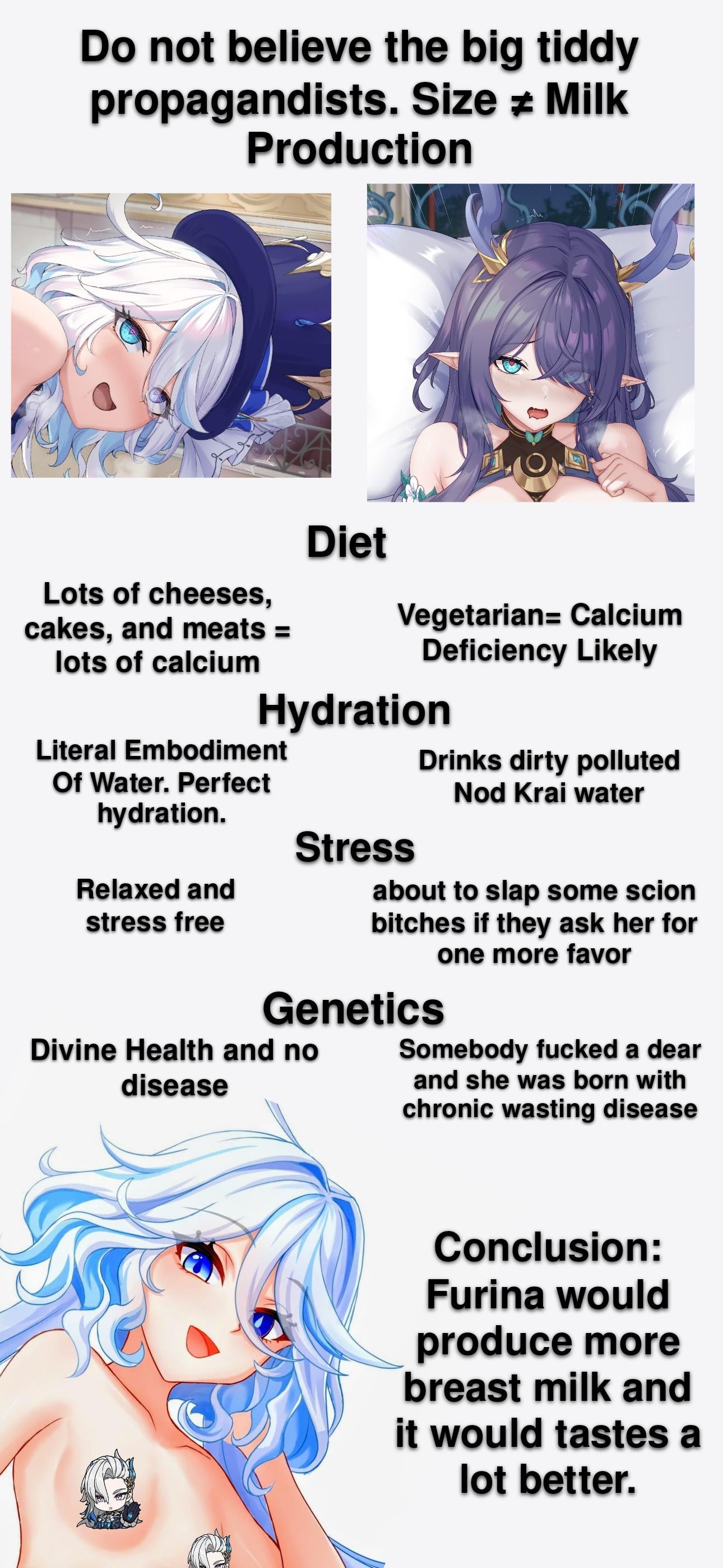 И всё это потому что именно этого явно не хватает у имеющихся луновичков, а еще именно в этом явно слаба Фурина. Нам выкатят такого второго гидро-архонта, но с хило-саппортским уклоном. Личного дамага у неё может и вовсе не быть, если свои основные роли она будет выполнять качественно. Скриньте.