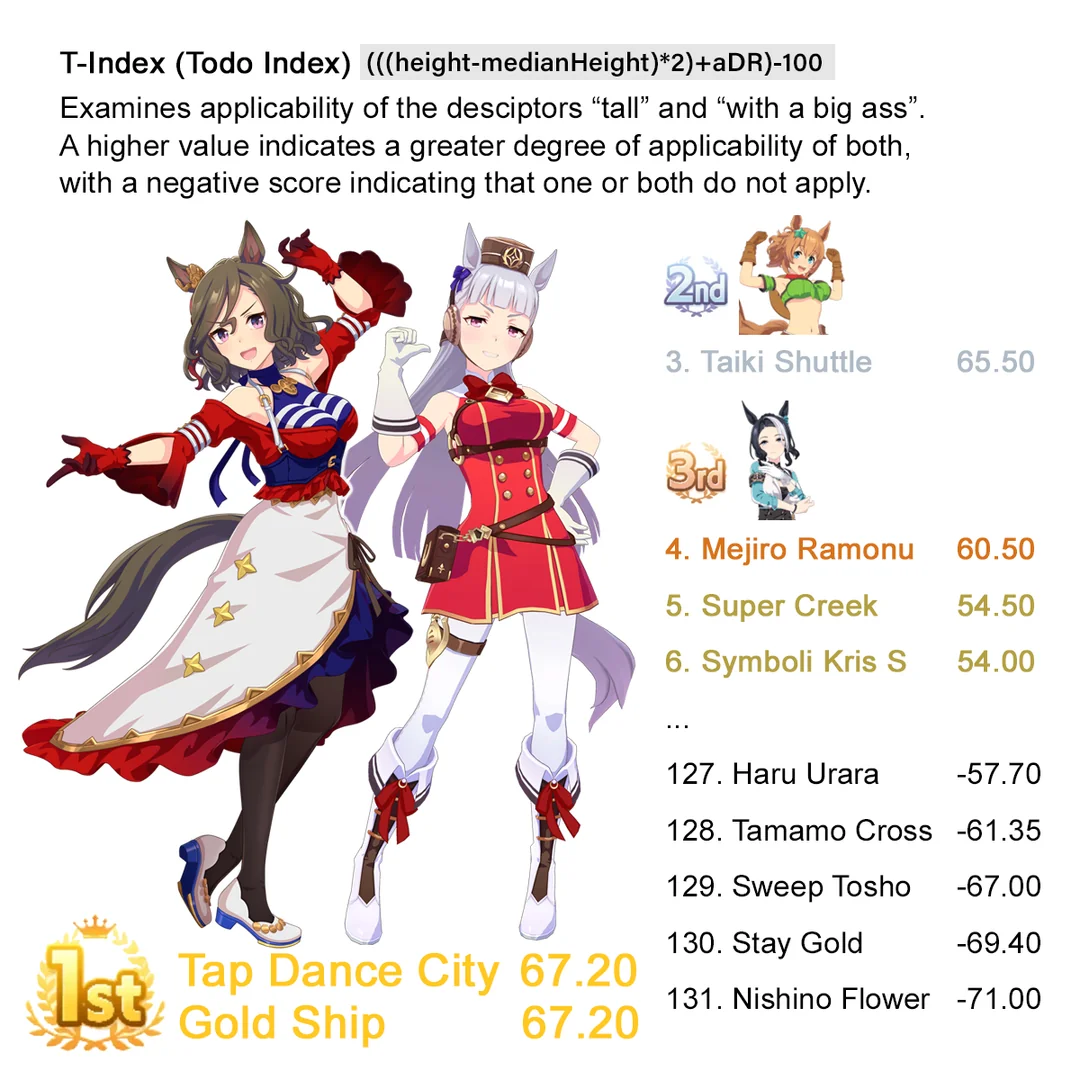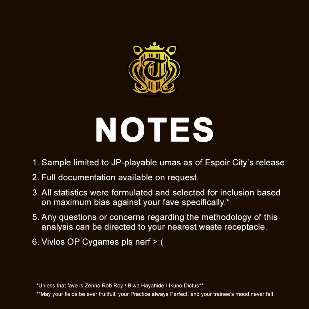 >>5571685 Ну вот смотри, прям по пунктам Friendship bonus= бонус радужных тренировок, не много, но хотя бы не меньше чем у всех. Mood effect= бонус от настроения, настроение само дает бонус, а это бонус к бонусу, то есть вместо 20% при максимальном будет 26%, неплохо, есть и похуже, есть где вообще нет, но опять по минимуму, а это два основных момента прироста статов. Speed/pоwer bonus 1, срабатывает только если треня дает стат и может мультипликативно настакиваться с другими бонусами, процентные же бонусы работают аддитивно. На самом деле оба хорошо, скорость чуть лучше потому что у тебя будут и другие карты на скорость, павер чуть хуже, потому что не будет других карт на павер, на самом деле вряд ли даже хорошо сыграет на будущем турике, где карты на павер будут более востребованны карт на стамину как раз из-за первых бонусов. Initial speed, ровная двадцатка на старте, не много, но приятно, может помочь выиграть пару пососных гонок на старте, которые сливаются гарантом, поможет вытянуть +4 каждого стата за первое место, вместо +1 за третье, полезный навык, ивенты на статы у нее тоже приятные, но ничего выдающегося. Training Effectiveness, то что отличает хорошую карту от плохой, это базовый бонус у любой тренировке с этой картой, который работает всегда, 5%- мало, та же Эйшин со своими 65% к бонусу от муда, даже за вычетом двадцатки той что есть у Хало все равно при грит настроении создает разницу 9% за треню и 4,5% при гуд. Race bonus/fan bonus, ну не самые полезные навыки на данном этапе игры, тем не менее, у нее их вообще нет. Hint frequency/levels, скилы она дает либо говно, либо самую базу которую дают пять других карт или вообще скилы что падают с трасс, даже ее ракевари нахрен не нужен без свинга Крика, а хинты к обычному скилу Крик и сама дает. specialty priority, если что она не устанавливает шанс, а увеличивает, шанс прихода ее на треню будет не 14,5%, а 22%. Это больше чем у остальных, не считая Китасан с ее 29%, но не прям критично, да и с учетом сколько она наваливает статов, она еще в минус сыграет, в сравнении с другими картами.
