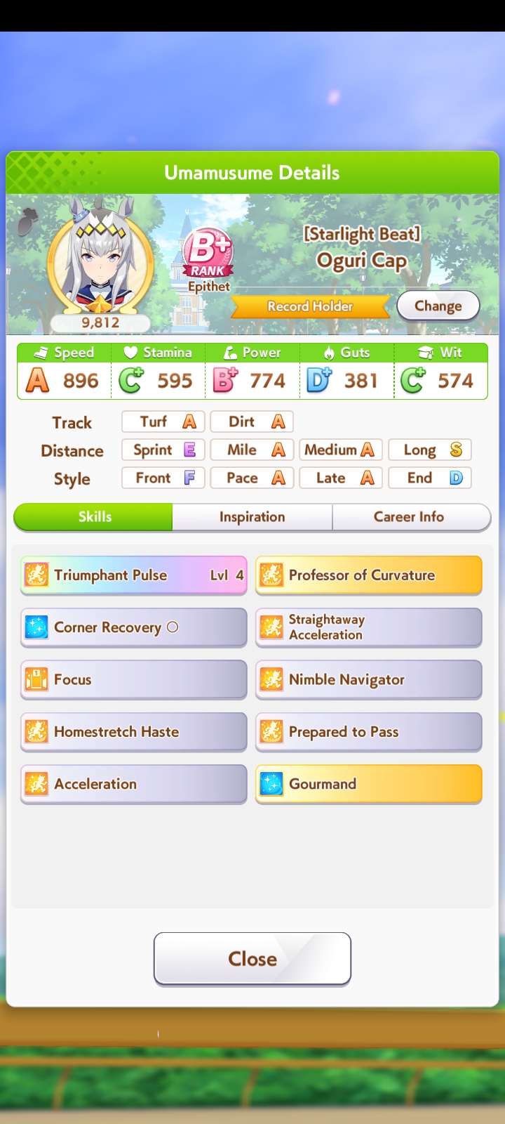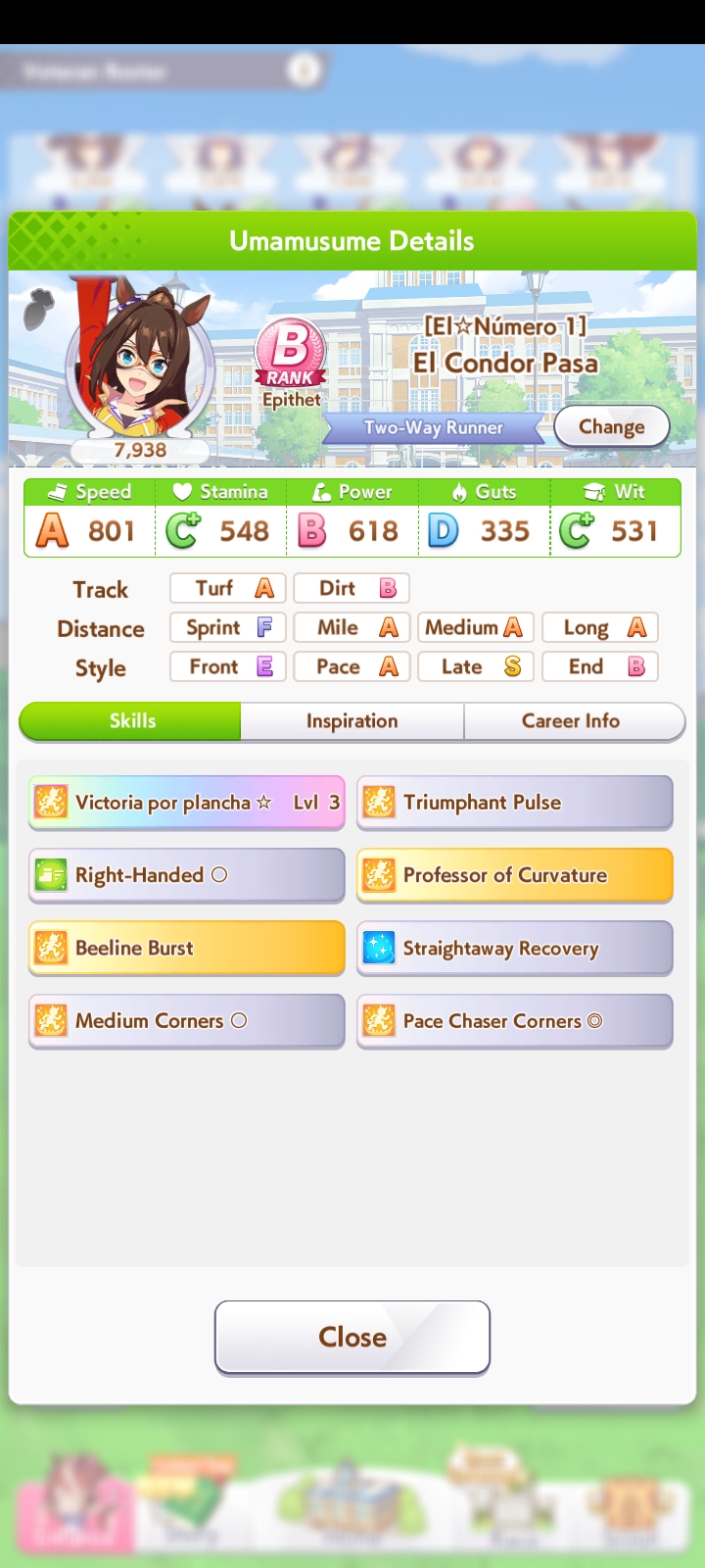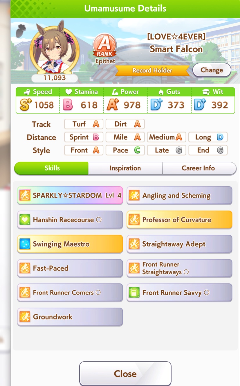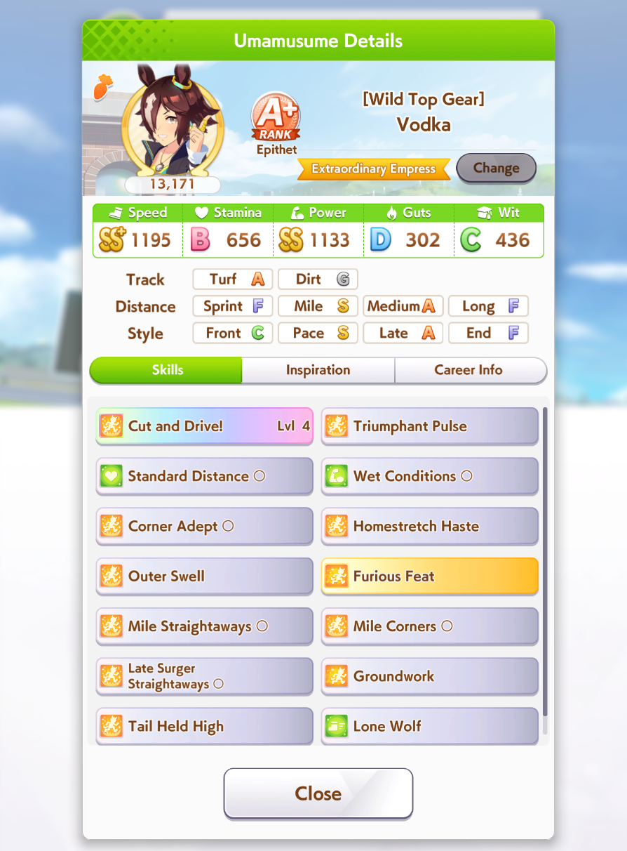 >>5626919 Умения собрать это рандом, как повезет. Ну или можно конечно забрутфорсить так сказать кучей карьер, рано или поздно совпадут и статы и умения (может быть) и ещё какой-нибудь S накинет в нужную дистанцию или тип ипподрома.