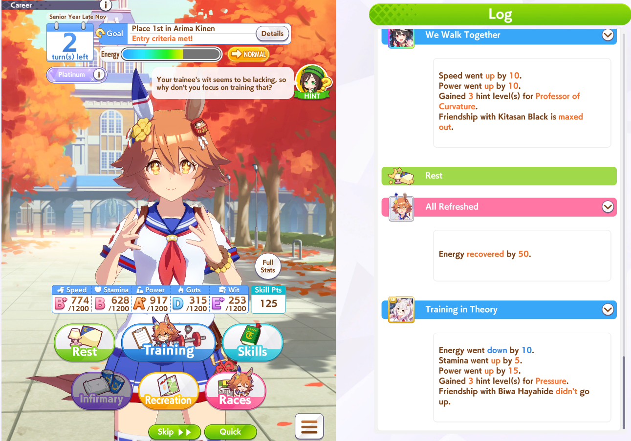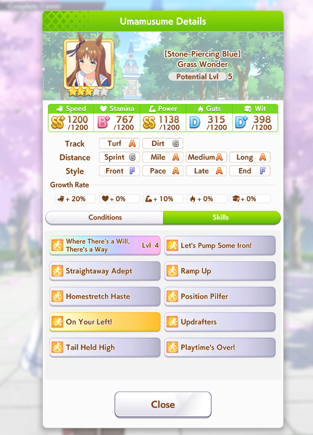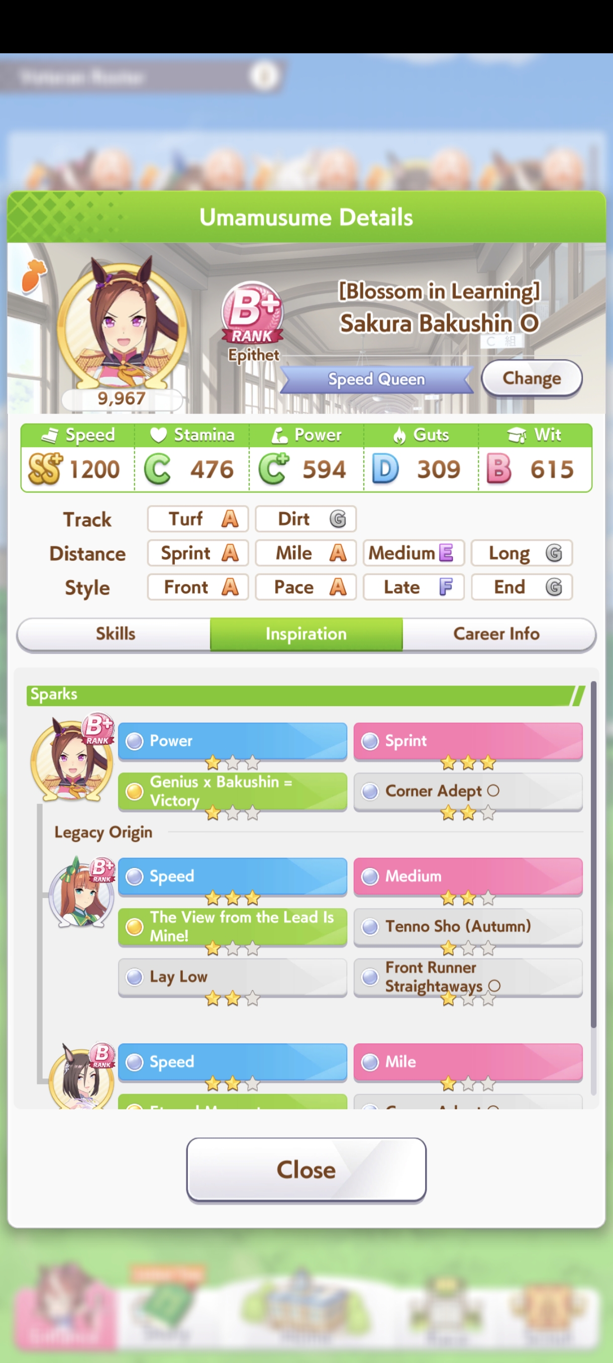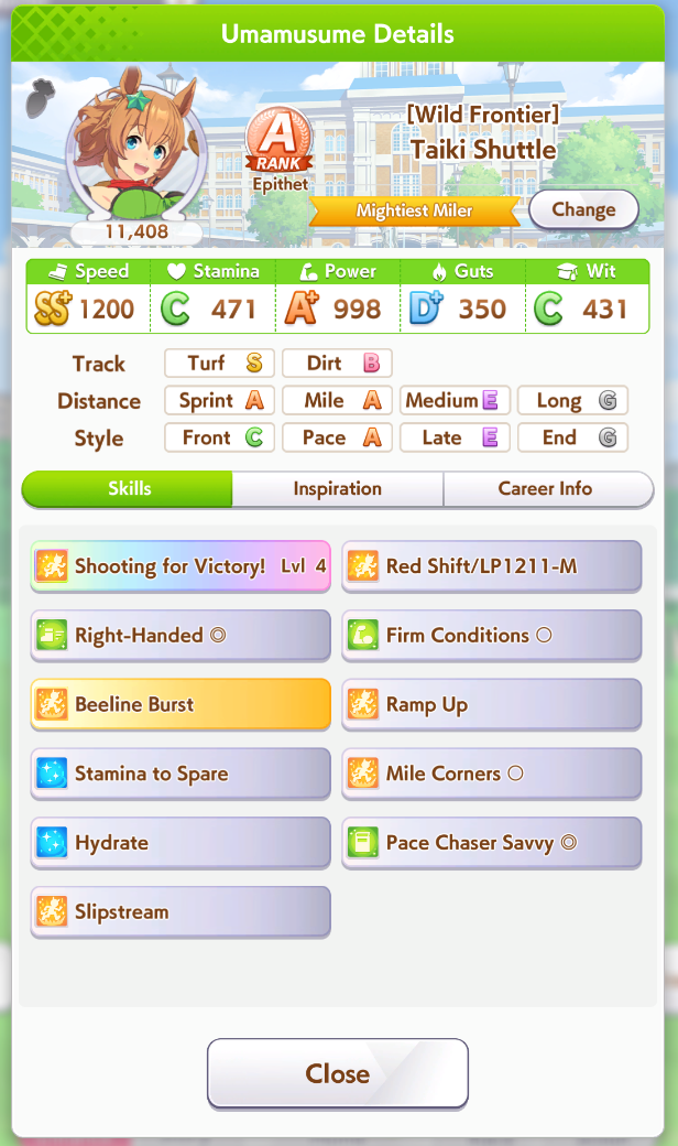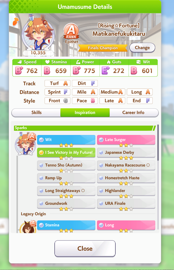 >>5626919 Умения собрать это рандом, как повезет. Ну или можно конечно забрутфорсить так сказать кучей карьер, рано или поздно совпадут и статы и умения (может быть) и ещё какой-нибудь S накинет в нужную дистанцию или тип ипподрома.