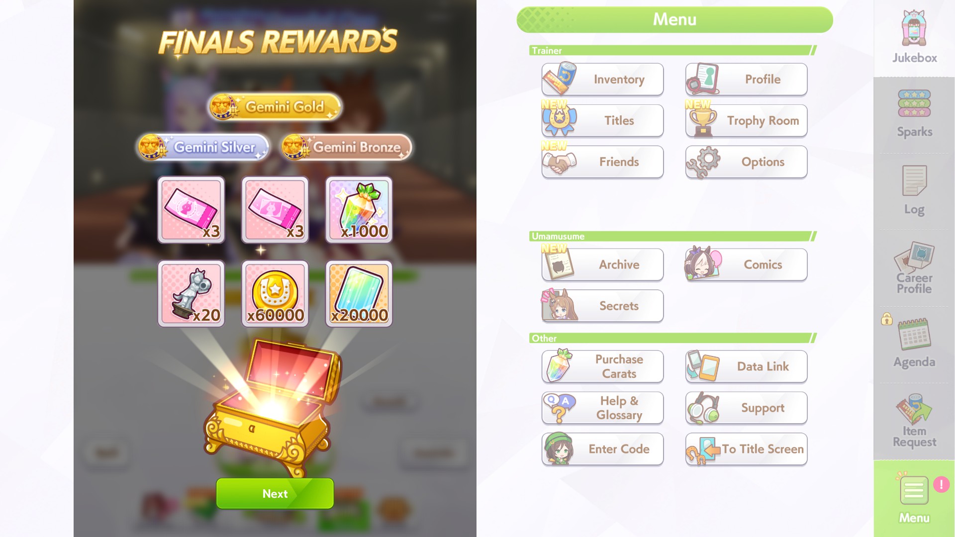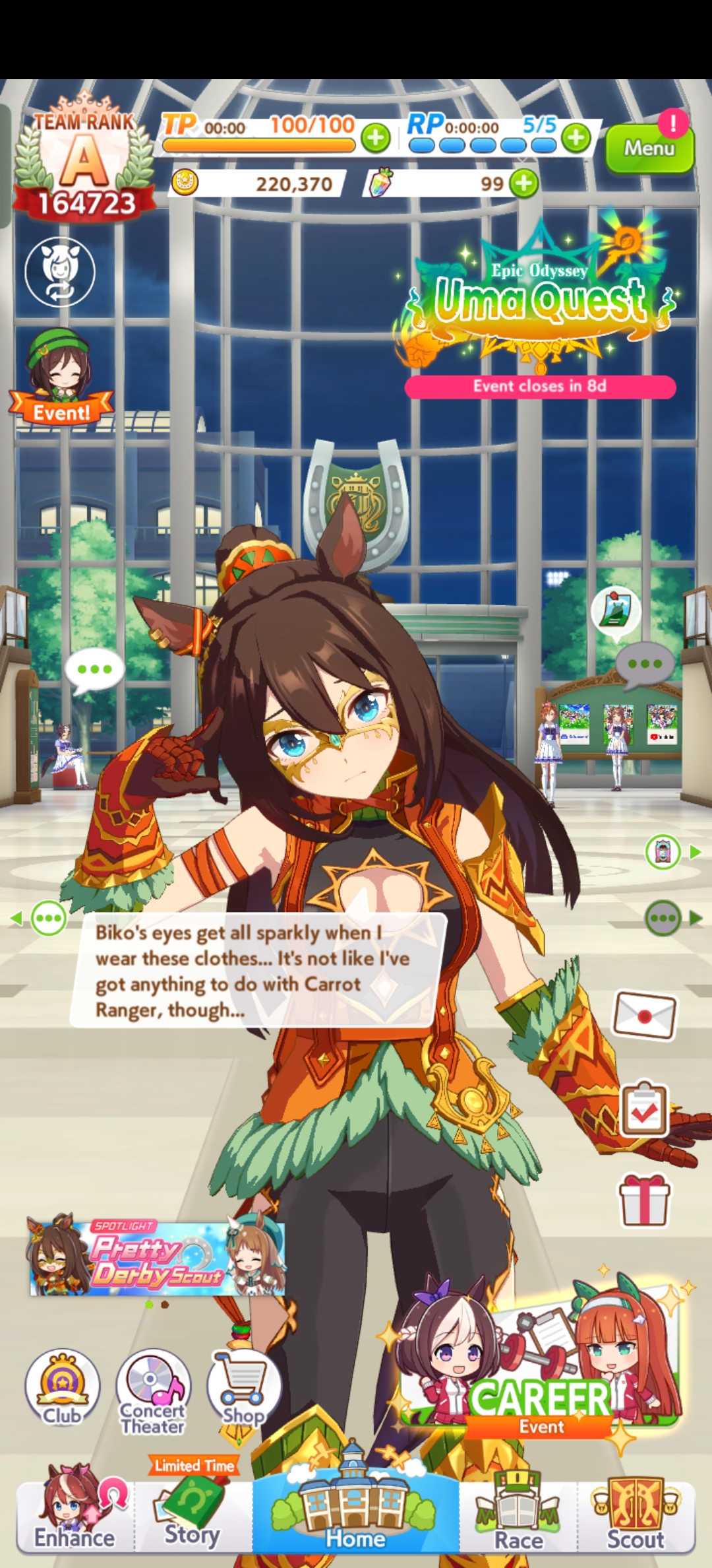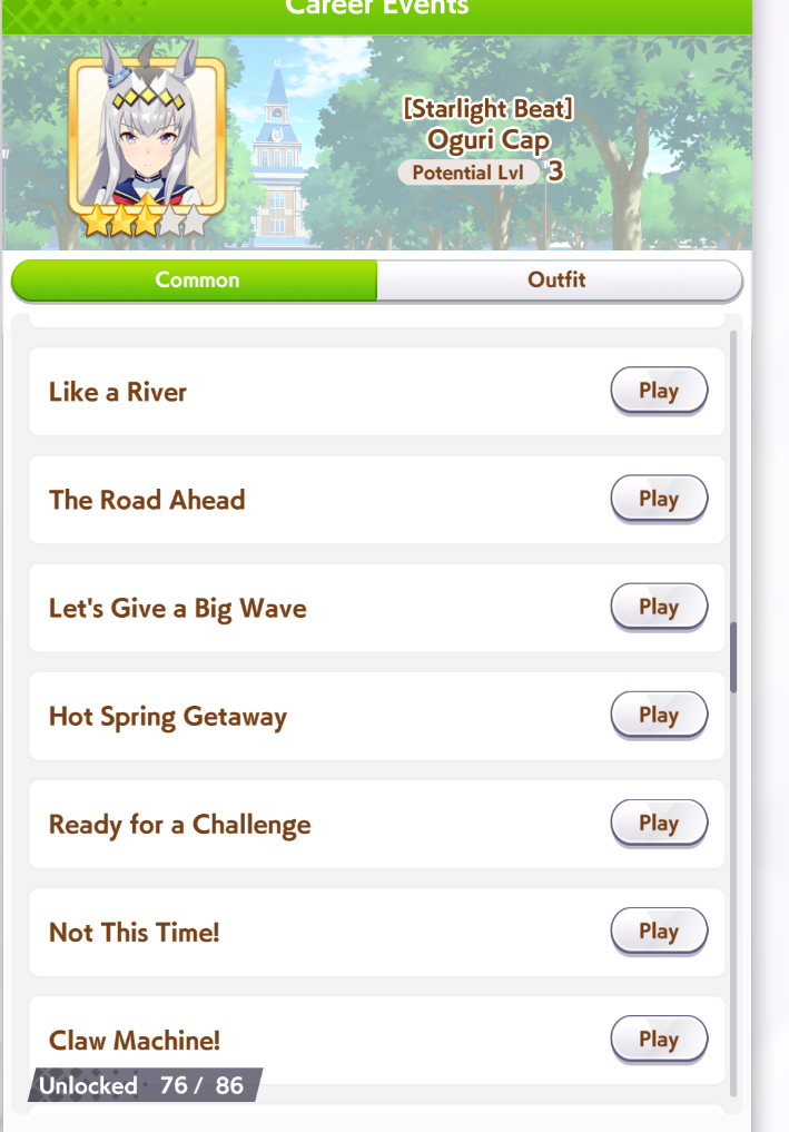 >>5567472 Star unlock в меню enhance за звезды, 3 звезды = платье вместо "стандартной" одежды, даёт улучшение уникальной способности и три события в карьере, дальше уже просто только статы дают. Звезды получаешь за дубликаты персонажей с гачи или покупаешь за статуэтки, иногда проводят "скачку против легенд" (сейчас идёт против МакКвин), ещё продают в магазине, который три раза в день появляется за денежки (но очень уж дорого, я б не стал).