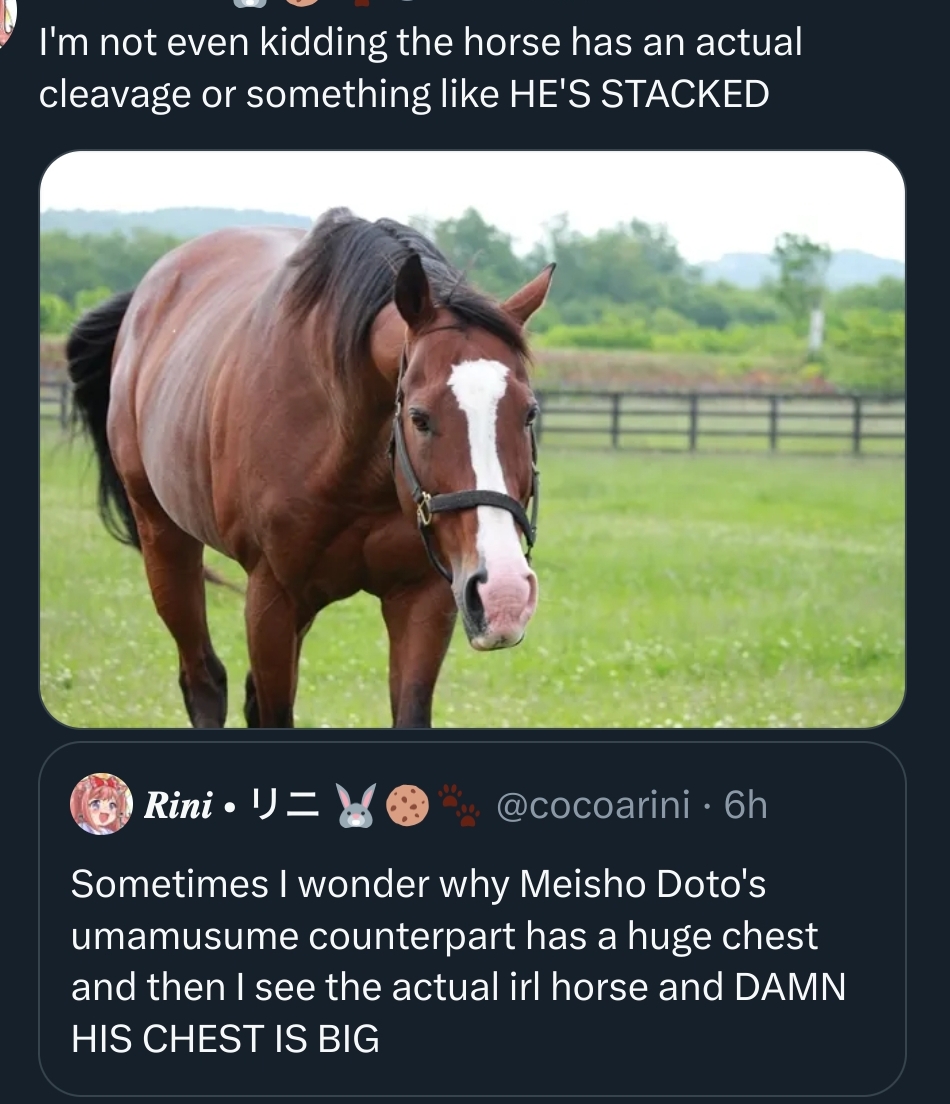 Чет я резко начинаю осознавать что у моих неудач дело совсем не в невезении или плохих картах. Меня раскатывают люди с более слабыми картами чем у меня, даже получая прям ебнутые статы 1200/650/1050/350/600, мои лошадки остаются абсолютно неконкурентными, не забегают даже в топ 5, а конкретно та, что имеет статы что я описал стабильно 9я, даром что ранг А+, я понимаю что там провал по скилам, но проигрывает она порой еще более потешным лошадкам чем сама, если по статам собрать лошадку у меня выходит, то по скилам я абсолютно ничего не могу собрать, даже делая по 16-20 гонок в карьере, ну может побед чуть меньше на 2-3, хотя бывают и чистые карьеры. Конечно в младшую лигу я не пойду, но теперь понимаю что мой потолок это финал А, финал А я возьму без проблем, но вот есть чувство что там только удачей и максимум топ 2, да и то потому что третьим могут дать рандома, который на шару второй тур прошел и оно прям несколько поддушивает.