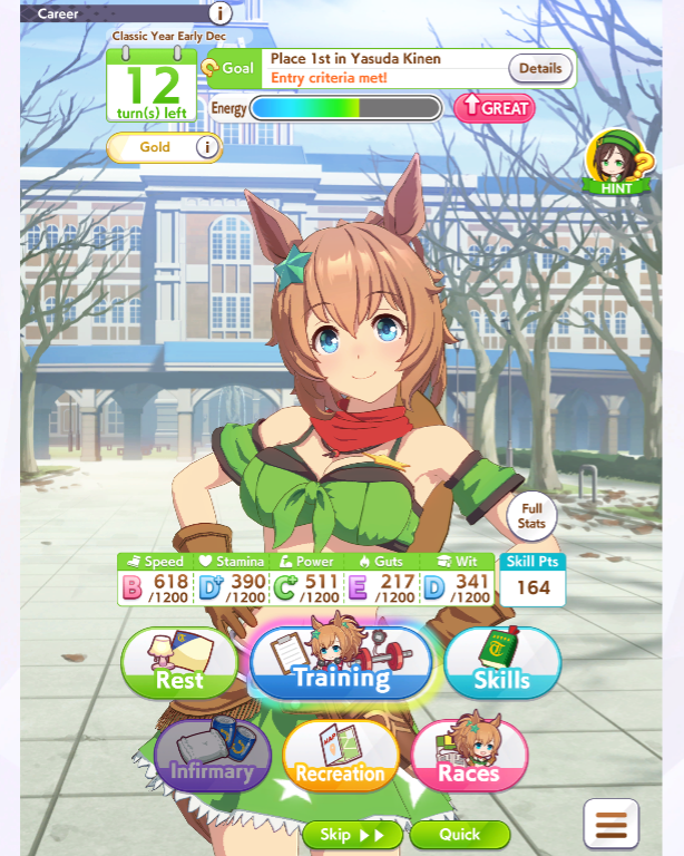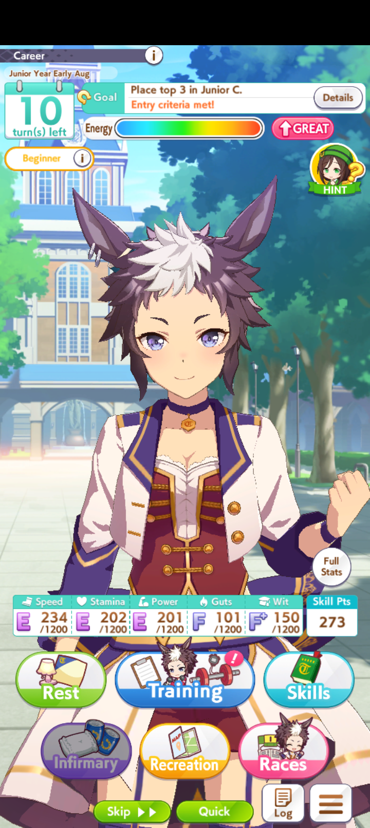 Как же заебали раны говна когда что не делай - лошадь всё-равно не бежит. Но что бы три раза проиграть дебютную гонку притом с норм статами, такого я честно говоря ни разу не припомню за все три месяца игры. Ну и дальше карьера ни шатко ни валко шла. Первые два года вообще ничего не выигрывала, каждые два-три хода какое-нибудь дерьмо случалось, кнопку рекреации заебался жать уже. Так что не удивился когда даже уру не взяла, хотя к финалу вроде даже раскатилась немного.