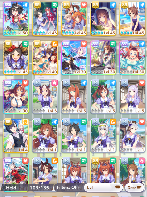 Я на около 10к вышел стабильно что-то в последнее время (хотя бывает и хуже) и у меня даже ни одной SR нет выше 0 ЛБ. Только Супер Крик 1 ЛБ и парочка 0 ЛБ ССР на скорость. Может просто везёт, но мне кажется просто наследие получше стало вот и всё, ну и кнопки жму наверное чуть получше, но тут на самом деле от меня немного зависит кроме попыток картами как-то шанс нужных кнопок повысить, а карт то толком нет.