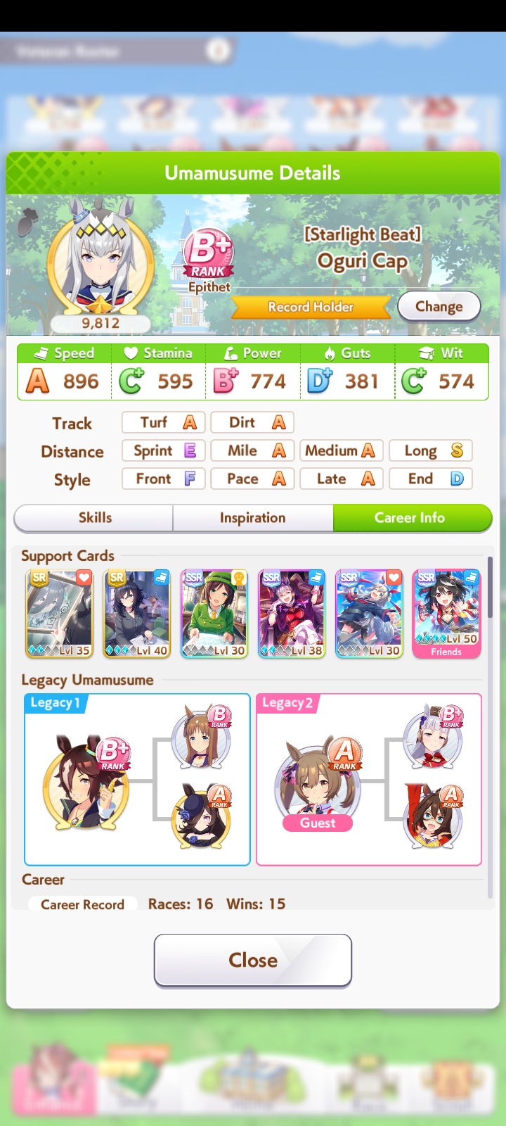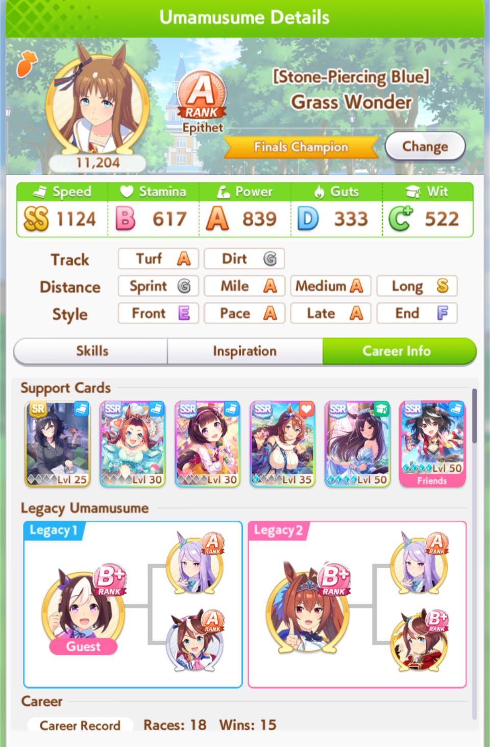 Накачал бомжовые А, А+ лошадки, забавно, что мои родители для них были сильнее их по статам, но тогда скиллы были не все, так как качались для другого и карточки были не те. Хз кого отправлять, пока буду левой пяткой по кд катать Грас Вондер, чтобы эвент делать и заодно вылавливать год ран. Но впервые, я доволен что получилось уже за 3 недели до начала ЦМ, дальше жопу рвать нет смысла, у меня просто не те карточки чтобы выкатывать, что у анона выше, а чуть сильнее всё равно не поможет. Подпивасов и мои катнут, я уверен, так как на лонге куда слабее выкатывал и прошёл спокойно в А финал.