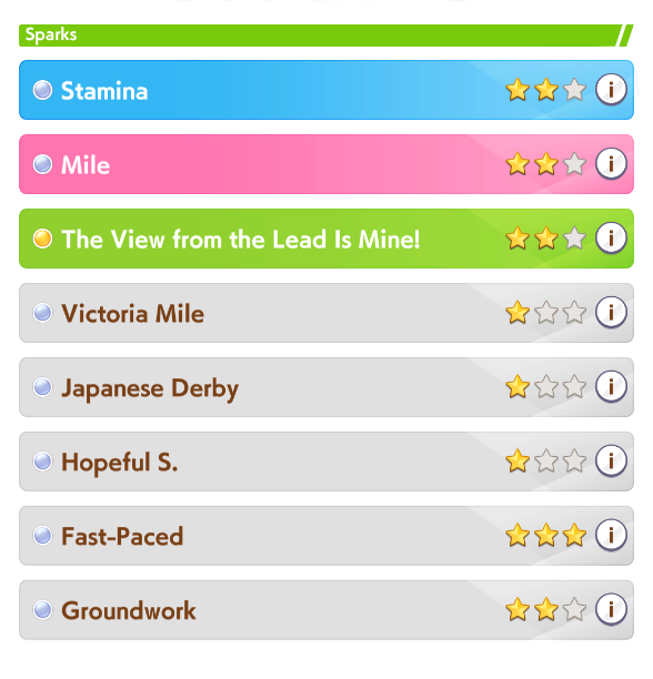 Ну и вообще, если бегаешь предка, то чем больше G1 гонок бегаешь, тем лучше. Потому что всё G1 гонки могут тоже дать свой белый спарк. У каких-то гонок спарк дает статы, у каких-то скилы.