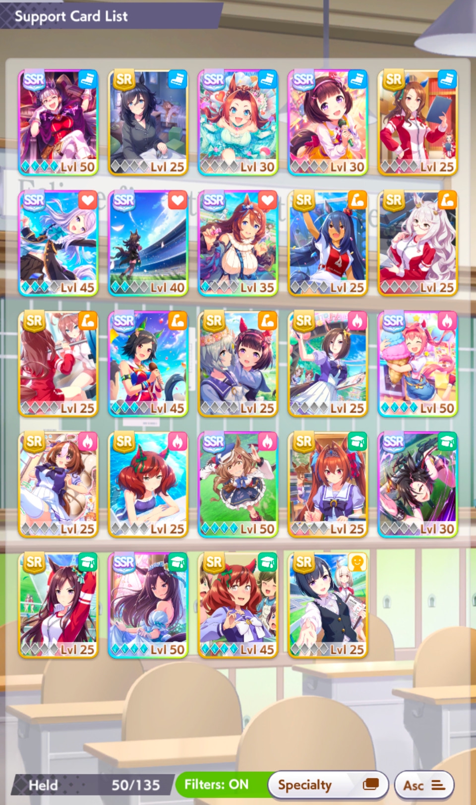 >>5630192 Да не вопрос. Тазуну беру потому что с ней результаты выше чем с 4 картой на спид или третьей на стам. Да и вообще карьера Огури на неё неплохо отзывается.