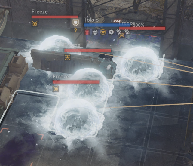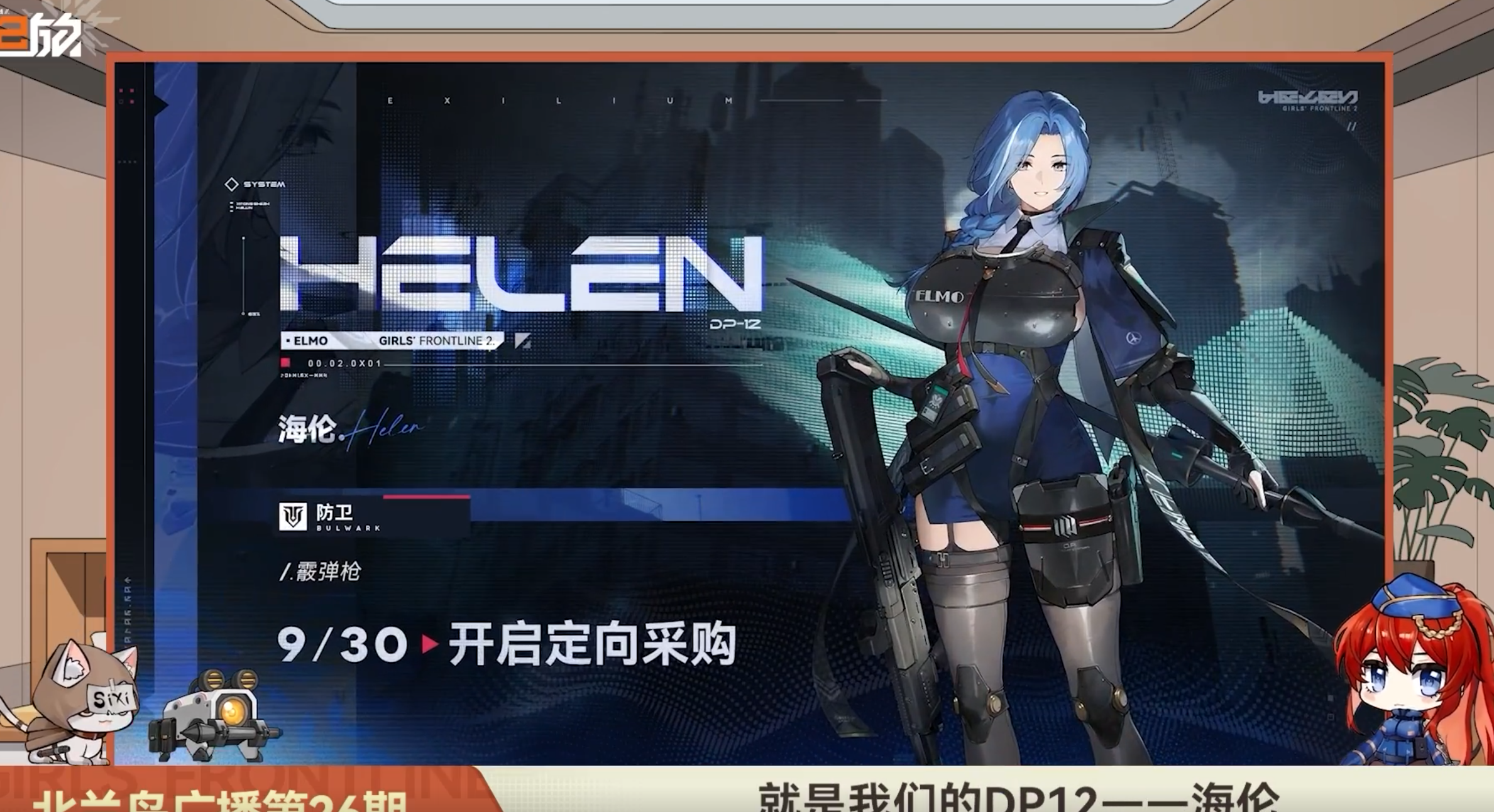Хелен . Мороз. Класс Бульварк, использует дробовик ДП-12. Обычные атаки наносят морозный урон. Пассивка: Увеличивает максимальное ХП и защиту, снимает дебаффы с себя и восстанавливает определённое количество хп. Чем больше дамага Хелен впитывает, тем больше бафов она для себя получает. Ульта: Выбирает 1 союзника и увеличивает его атаку и защиту, а также понижает кулдаун ультимейта у кукол с морозным элементом. После использования этой способности, хелен получает доп. действие [Extra Command]. 2 скилл: Предоставляет союзникам щит. Производит морозный клетки и диспелит дебафы с союзников. После использования этой способности, Хелен может совершить дополнительную атаку. 1 скилл: Конвертирует дамаг впитанный союзниками в доп.действия [Extra Command](?) Её сигна: Увеличивает защиту и дамаг с обычных атак.