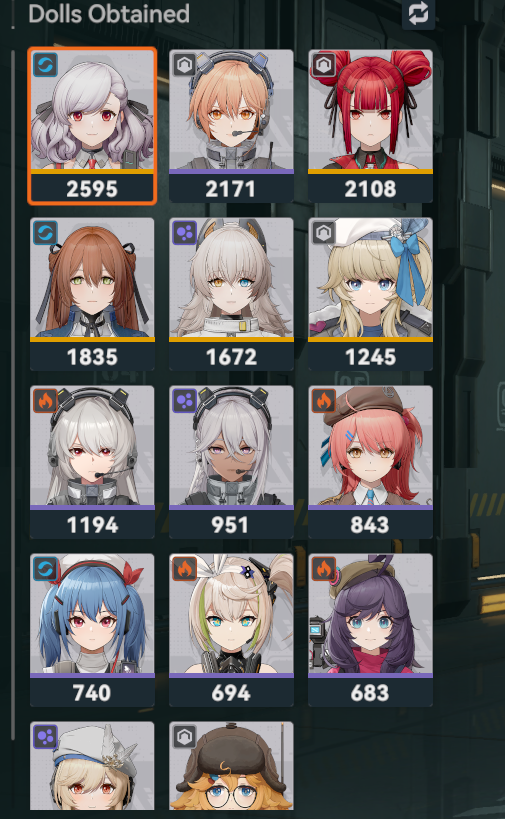 А вот теперь проблема. Да, новую куклу пока не выкрутил, но даже с ней придется брать Суоми. Явно рановато ввели электроданжи - просто кукол не хватает под них.