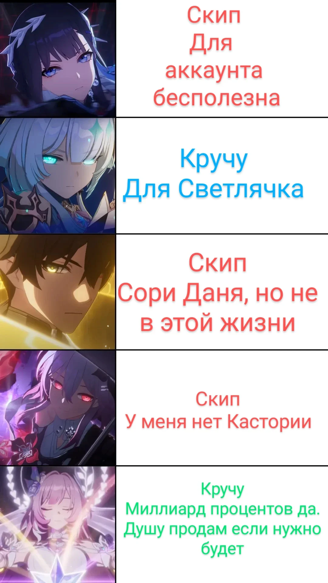 > у Сварога механическое дрочило которое может раномно выкинуть единственного дпса > у Авентюрина кубики которые могут рандомно замуолить единственного састейна Спасибо, Ляо