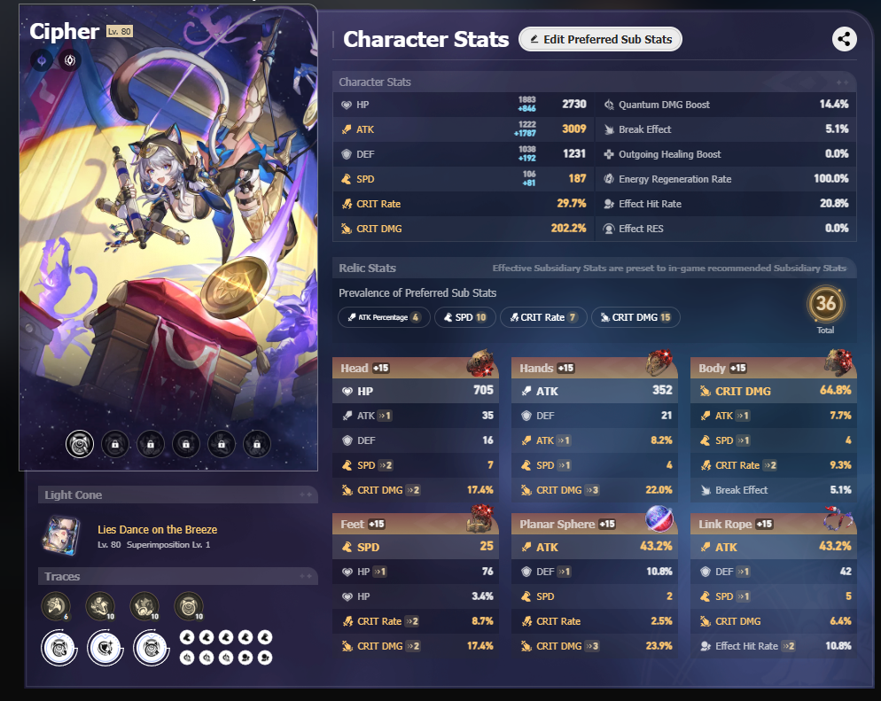 Норм такая Кася будет? На случай если она нужна как сабдд для Март7 прикинул какие у меня есть релики свободные. Хотя планарки наверно выпадут те что фаеноновские и они вероятно будут лучше так как в пати будет всегда условие что 8 тел.